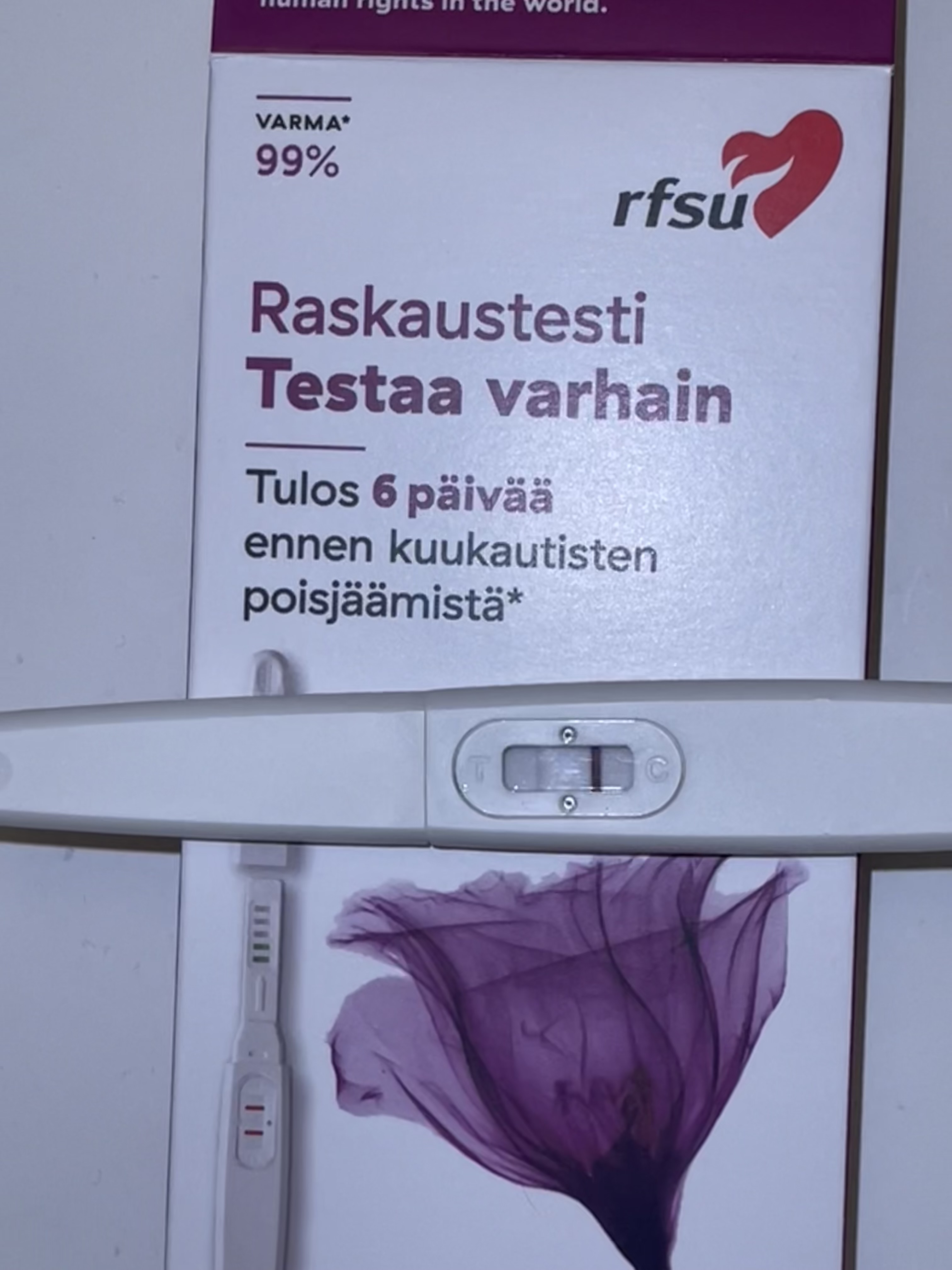 Mun raskaustesti siis näytti tälle nyt aamulla ja viiva ei kovin vahva ole,verta eilen tiputteli mutta ei jatkunut...