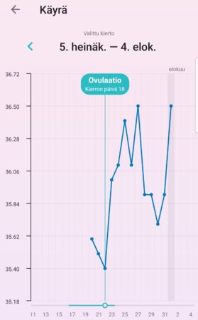 Itse epäilin limojen takia että ovis olisi voinut olla jo pari päivää aiemmin mutta kivut jne oli tuolloin 21.7. lasken nyt tuon dpo11 mukaan eli LA olisi 12.4.