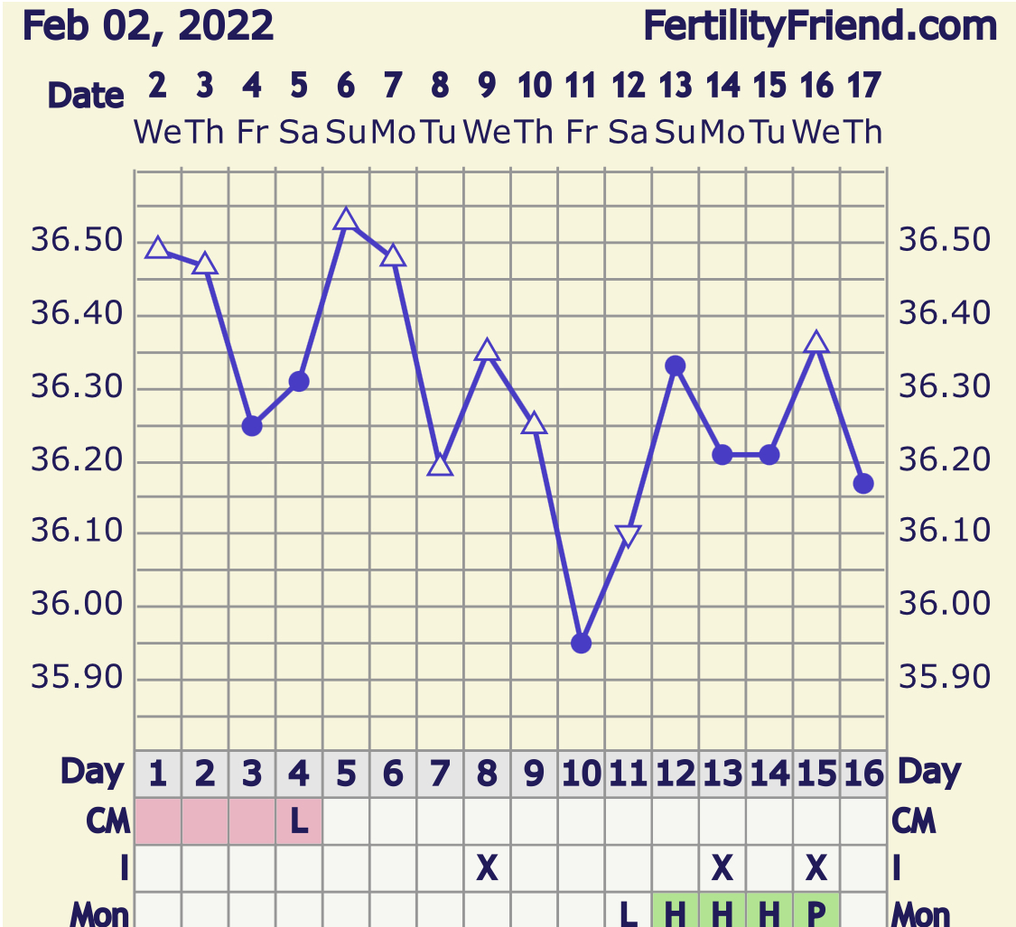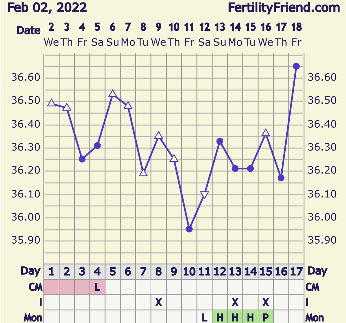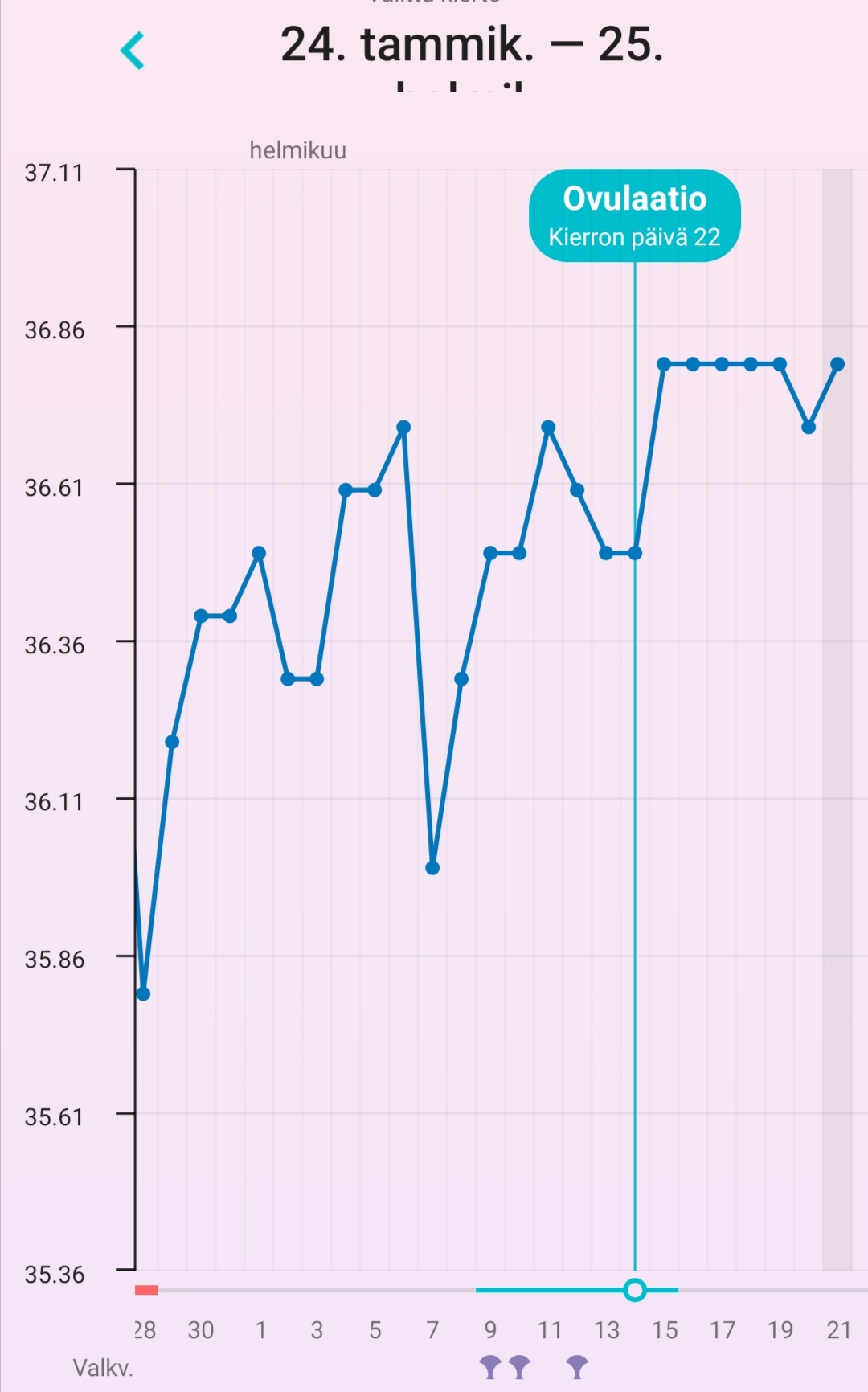 siis verrattuna aikasempiin kiertoihin. Eilen alko lugesteron mut se ei näytä vaikuttaneen asiaan. Viimekierron lämpöjä pidin alhasina, mutta nyt ollaan vielä alempana... Mitähän tääki on.