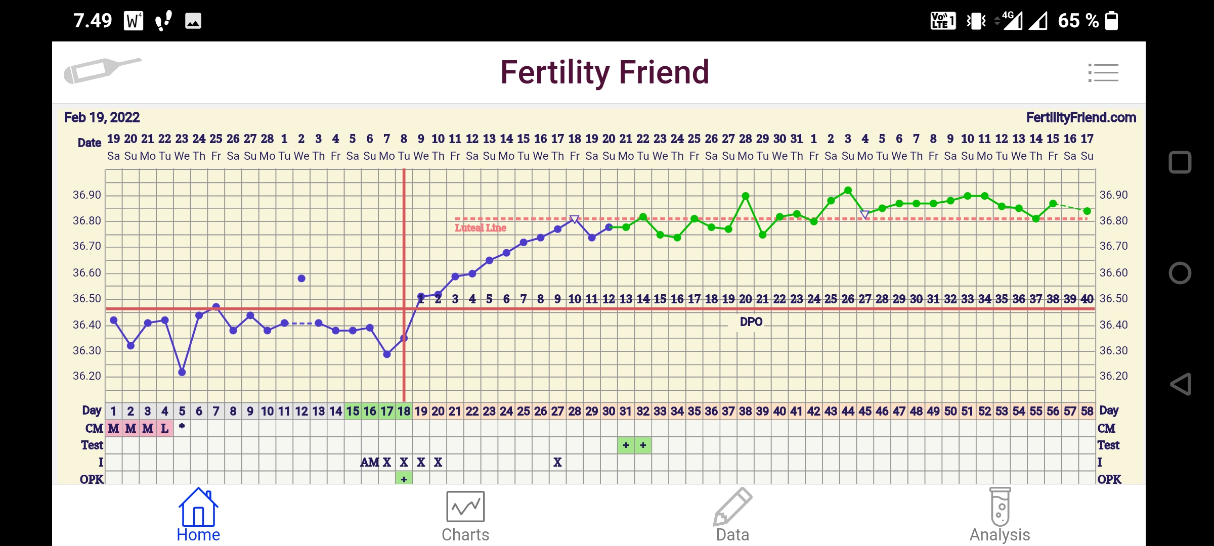 Foreverfeverillä on siellä hieno dippi! Olikos tuossa Flo:ssa myös niin että sen pitäisi pelkkien lämpöjen perusteella ilmoittaa ovulaatio? Vai tarviiko se muuta dataa?