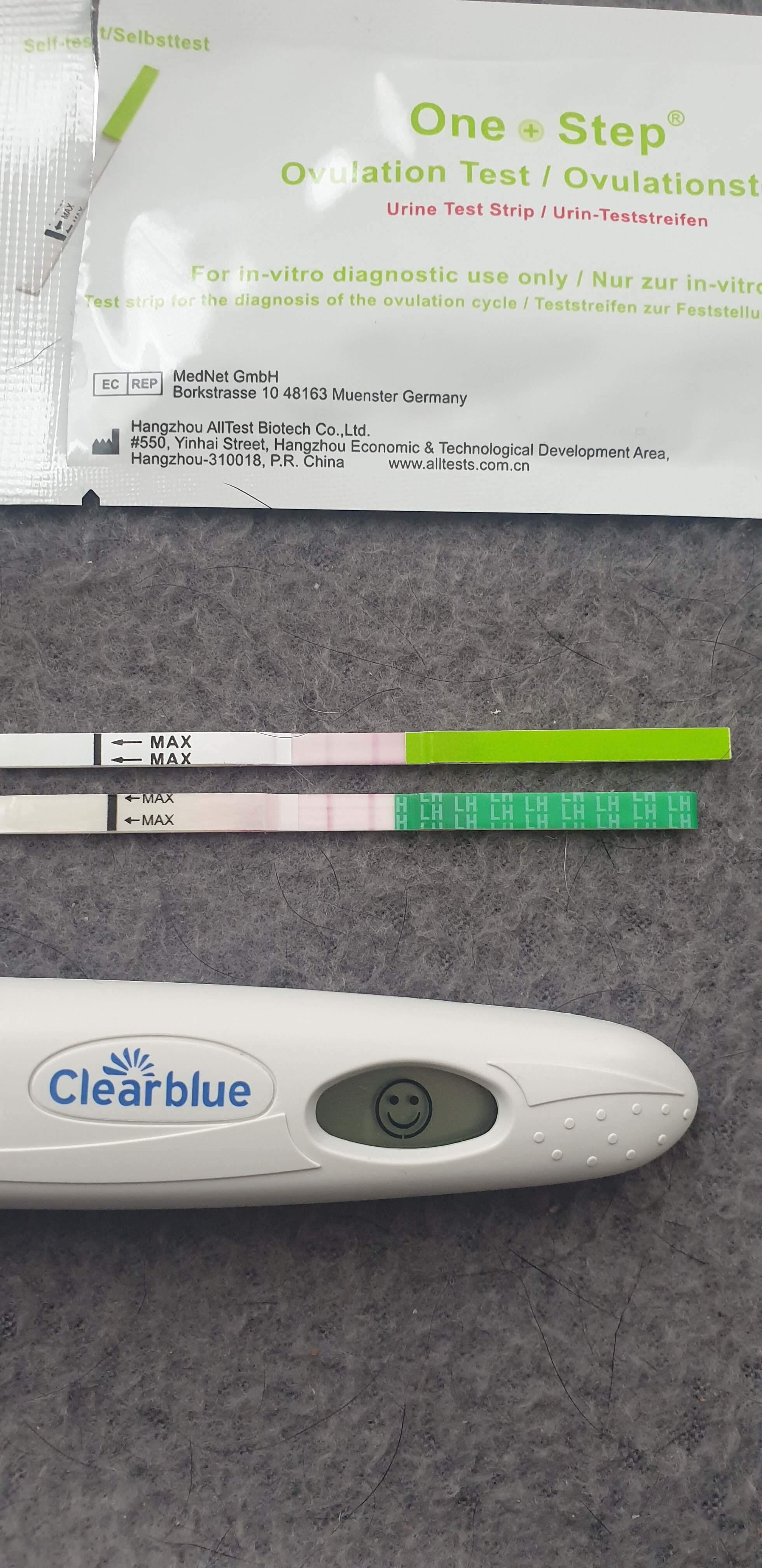 Tässä eilisen ja toissapäivän ovistestit, alempi siis eilinen. Joko tuon eilisen voi lukea plussaksi? Eilen oli myös maha sellainen jännästi kovan ja pinkeän tuntuinen, vähän kipeäkin, joten ajattelin sen liittyvän ovikseen, mutta lämmöt ei ainakaan vielä nousseet. Saa nähdä miltä huomenna lämmöt näyttää. Tähän asti aika siksakkia ollut tässä kierrossa :Smiling Face With Open Mouth And Open Eyes: