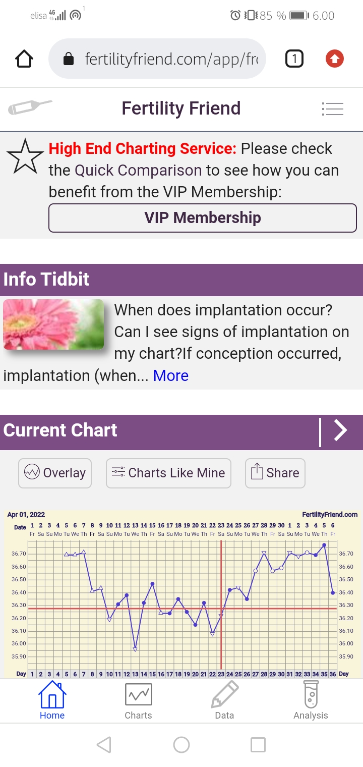 NewMoon: kyllä näyttää hyvältä! En osaa tuost testistä sanoa mut tosi lähellä plussaa jo :) niin ja unohtu vastata, että joo, kolmen kohonneen lämmön jälkeen FF vahvistaa oviksen!