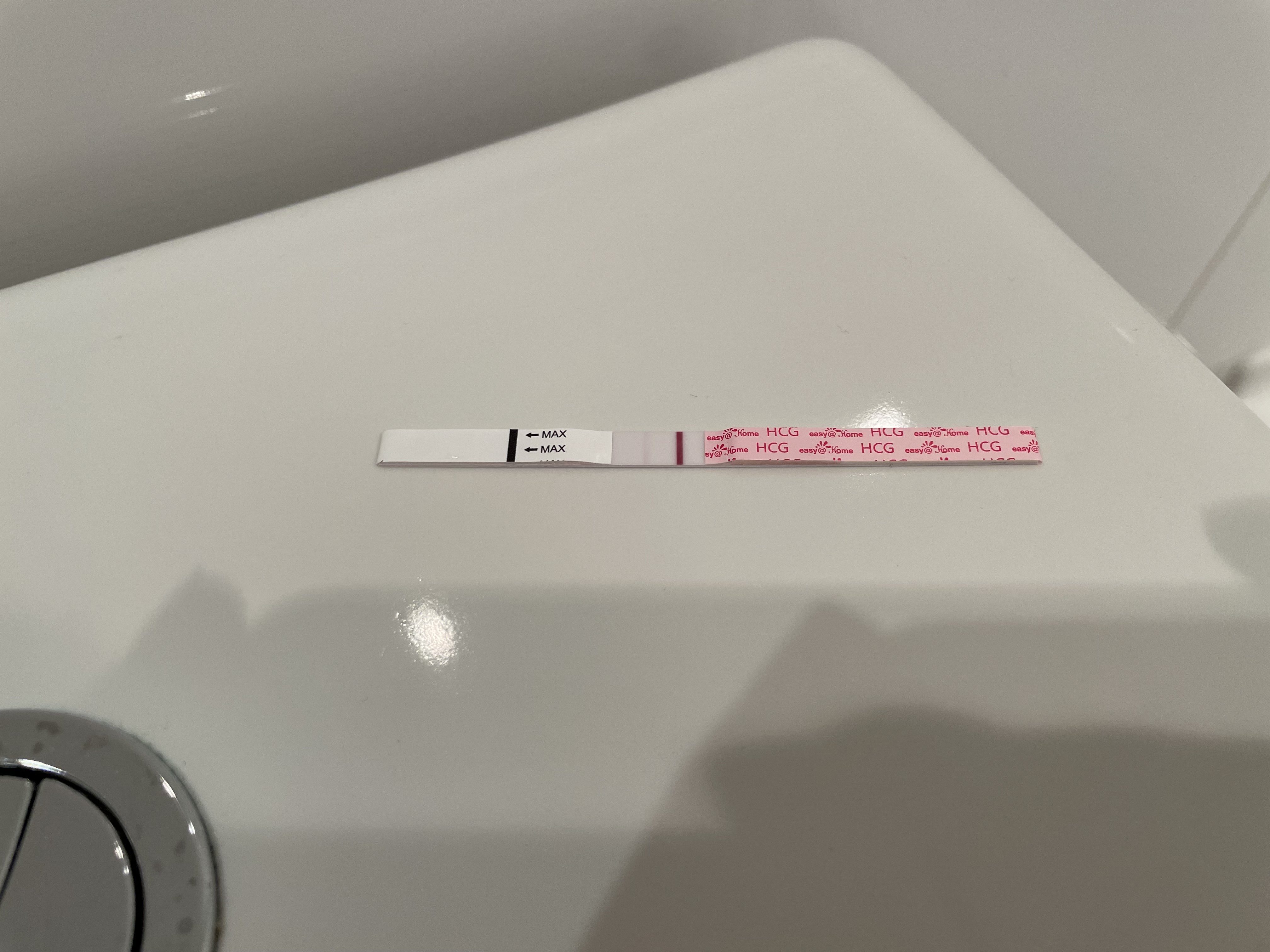 Ja kyllähän siellä joku haamulainen pilkistää. Tänään siis dpo11, 5 päivää oletetusta kiinnittymisestä. Esikoisesta testasin vasta dpo13, mutta siihen verrattuna tää näyttää kovin hailuralta viivalta, joten saapas nyt nähdä onko vahvistumaan vai haalistumaan päin. Tuntuu, että lämpöjen perusteella voi olla haalistumassa. Ei auta kuin odottaa ja testata uudelleen