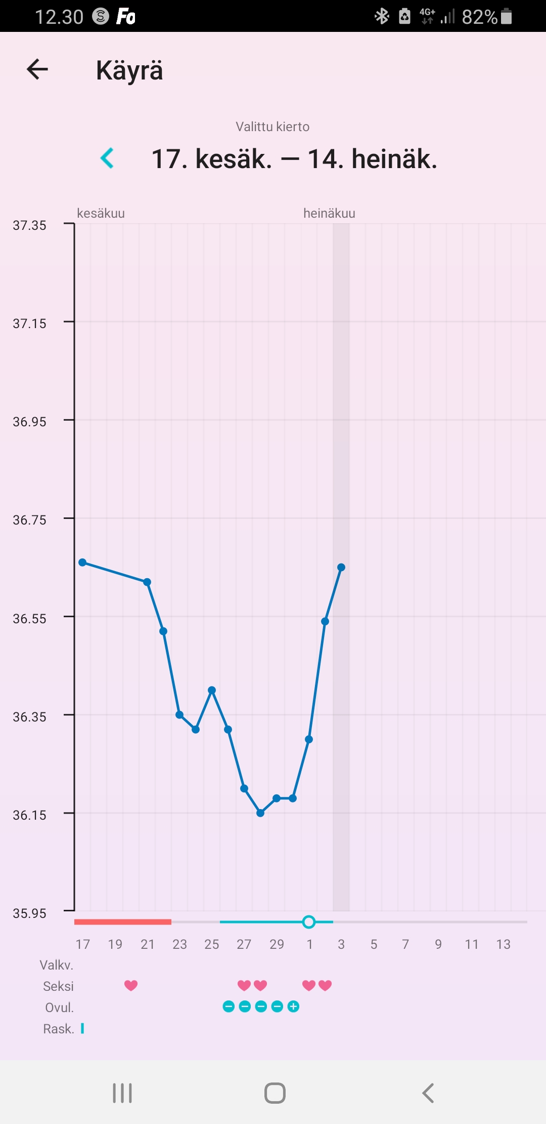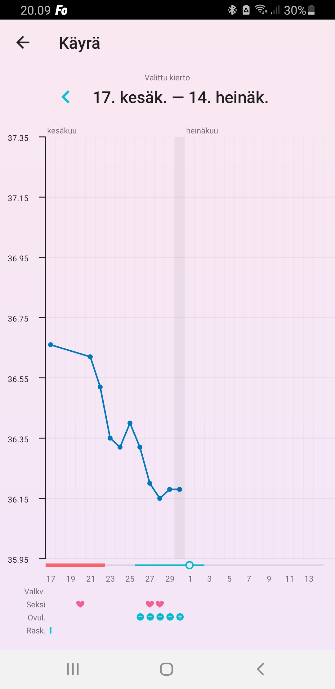 Torstaina Tuli siis ovisplussa ja pe, la, su aamuina lĂ€mmöt koko ajan nousussa đŸ€”