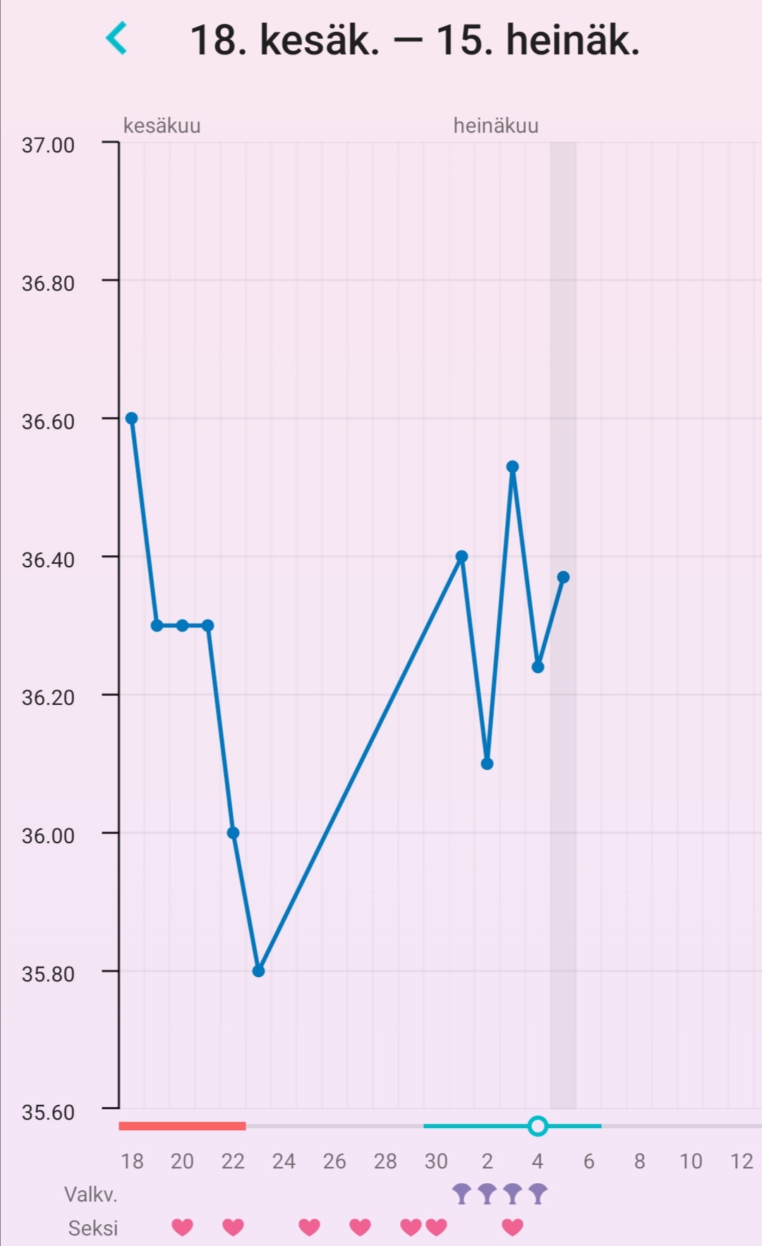 Mä en oo taas jaksanu mittailla kun ollu yöt niin mahottoman kuumia.. ja väärällä tavalla siis