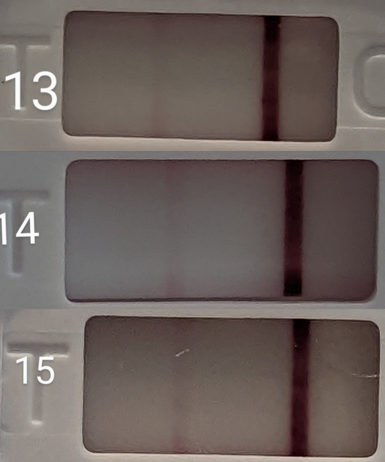 Pakko jakaa viime toukokuun ICSI plussakierron pc testit, tuo tummin on siis dpo 15 ja 4+1! Dpo 13 ja 14 näyttää mun testeissä aika saman vahvuisilta. Olen nyt taustalla seurannut jännitysnäytelmää, niin toivon Nurppu että kyytiläinen olisi tiukasti kiinni ja olet raskaana kunnes toisin todistetaan! 🤗