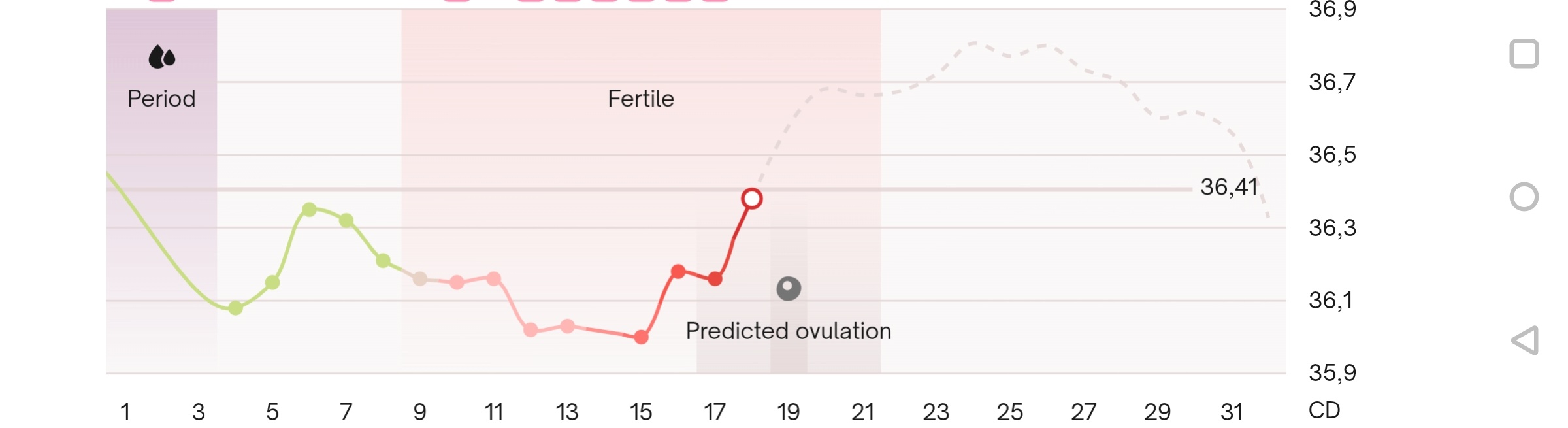 Mun mielestä niitä CB digin tikkuja ei saa ostettua erikseenTänä aamuna vihdoin lämmöt vähän koholla. Sovellus edelleen sitä mieltä että ovulaatio ei oo tullut, mutta oon itse aika varma että huomenna lämmöt vielä ylempänä ja ovulaatio merkkaantuu eiliselle.