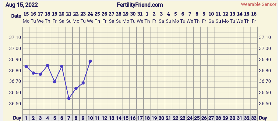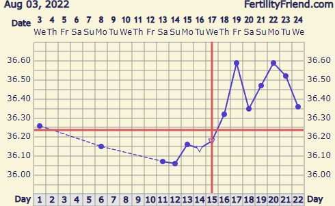 Äh hitusen ärsyttää kun heräsin melkein 40min normaalia aikaisemmin niin tän pvän noususta ei tullut isoa, mut ainakin on ylöspäin. Countdow to pregnancykin siirti oviksen nyt kp15:sta kun eilen vielä oli kp16.