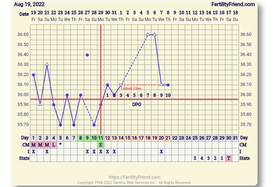 Hei kaikille! Mä täällä palailen takaisin arkeen loman jäljiltä. Ja esittelen mun villit viivat 😅 FF:n mukaan on dpo10 ja kovasti tekisi mieli pissiä tikkuun. Mutta mitään oireita ei ole ja viimeiset kahden aamun lämmöt ei ehkä kauheasti anna toivoa 🤔 kiinnittymisdipin pitäisi ilmeisesti olla vain yhden päivän mittainen. Ajattelin lauantaina tehdä testin, jos lämmöt ei tipahda entisestään.