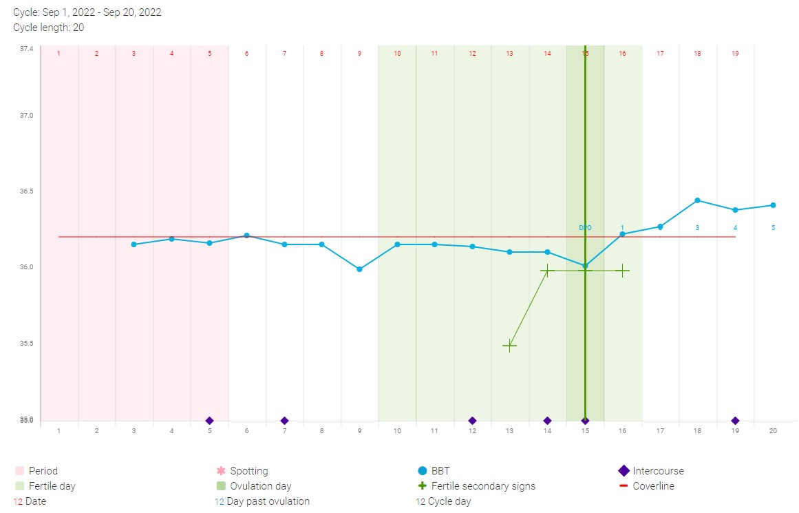 Tässä kierrossa muuten erityisen positiivista oli sen lyhyys! Normaalikierto mulla 32, mutta helmikuisen keskenmenon jälkeen ollut 37. Tässä kierrossa oli käytössä myo-inositol (Donaferty Premium) ja kierron pituus 30! Ja näkyy nimenomaan siinä, ettei tarvitse odottaa ovulaatiota sinne kp 21-22 asti... Eli myo-inositol ehdottomasti jatkoon, ja tässä kierrossa myös verigreippimehu kokeiluun :Smiling Face With Open Mouth And Open Eyes: Screenshot_20220920-111150_FF App.jpg
