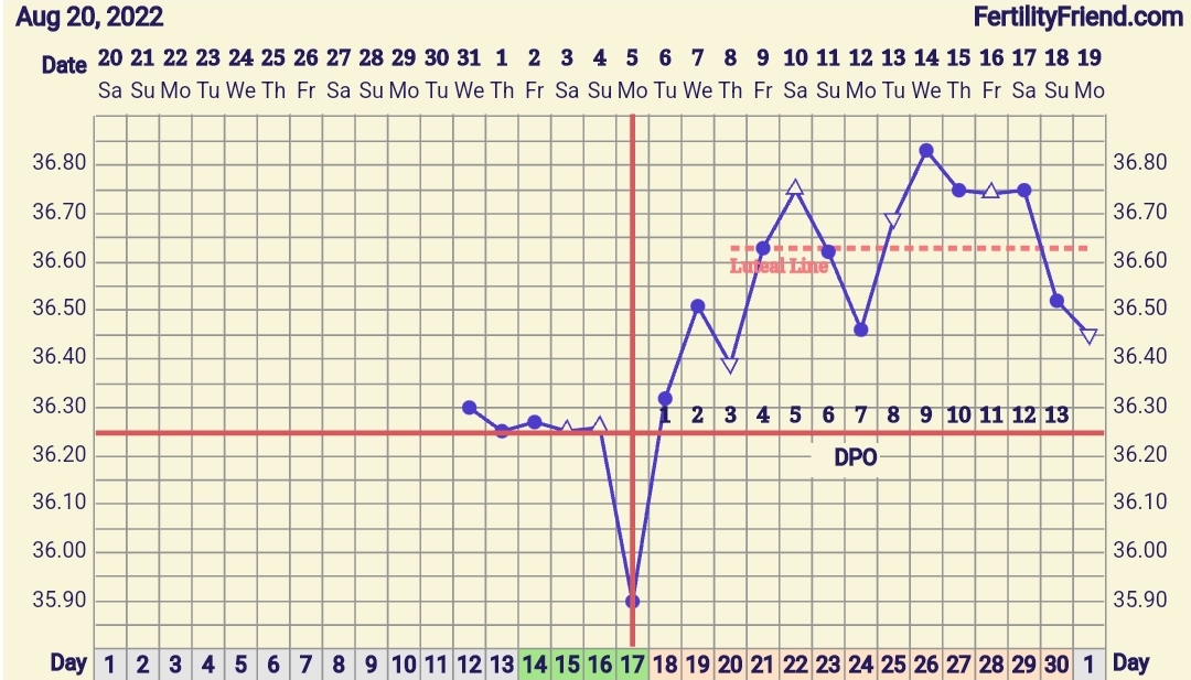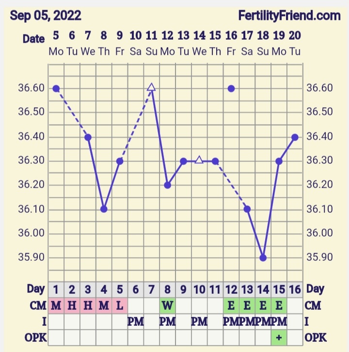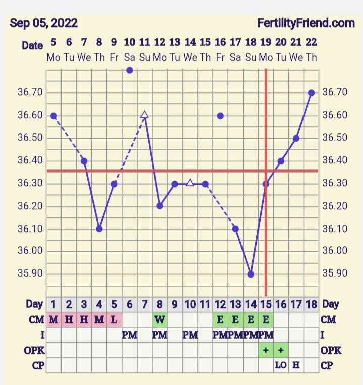 Nyt FF päätti sit kuitenkin, että ei se siirräkään ovista vaikka vielä eilen siirteli, ja se olisi ollut kp15 ja siinä pysyy. :tears: eli nyt ois sen mukaan jo dpo5. Mut kylläpä on taas alhaisia lämpöjä tässä kierrossa näköjään, kun ei meinaa kunnolla nousta sit millään.