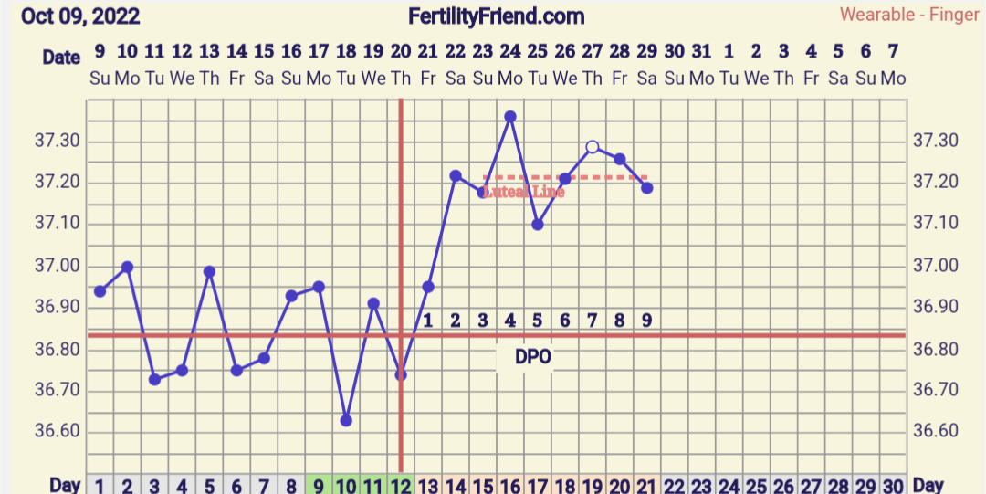 Lämmöt 0,1 asteen korkeemmalla kuin korkeimmat luteliaalilämmöt ollu missää kierrossa, mut tiedä millai tää flunsaa vaikuttaa. Eilen illalla oli kyl ihan normaali luteliaali lukema. Käyrä näyttää kutkuttavalta nousujohteiselta, mut ei voi innostuu tän flunssa takia.