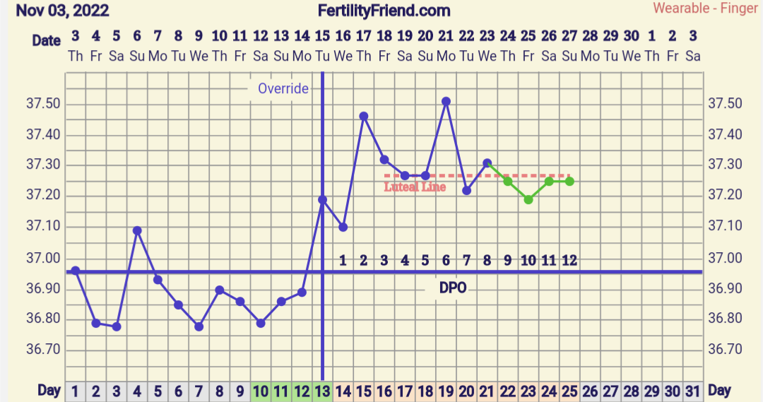 @Summerwalk mÀ kattelin sitÀ dpo6-7 lÀmmönpomppimista ettÀ oliko siinÀ joku yritys lÀhteÀ taas sinne hullulle siksakille mitÀ mul aiemmin oli. Ja sit ei lÀhteny vaan jatkuki tasasena. Musta tosi jÀnnÀ! Onko mulla niin et siksak tulee kun on kiinnittymisvaikeuksia? Vai onko siksak se mikÀ pilaa kiinnittymisen ja nyt lugesteron tasoitti hormonit kriittisellÀ hetkellÀ! Ei voi tietÀÀ!