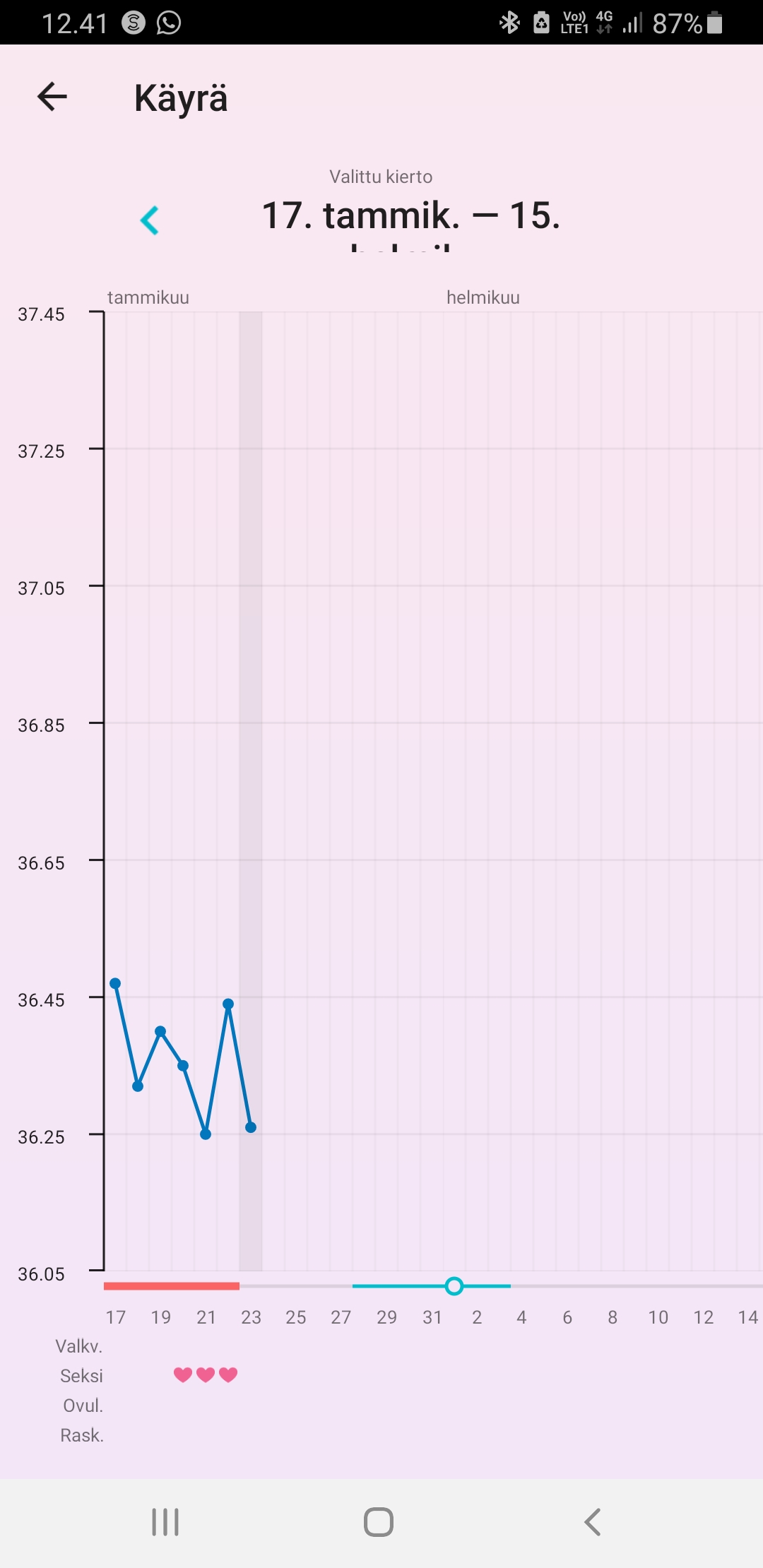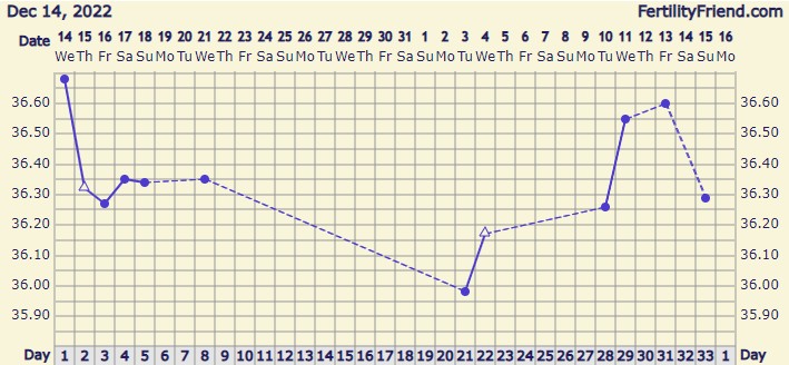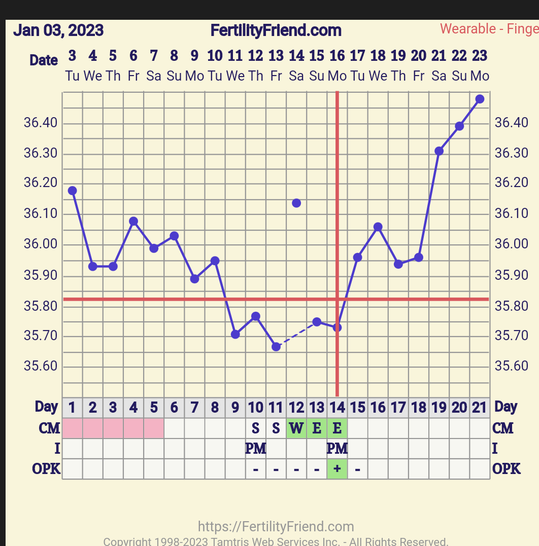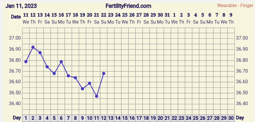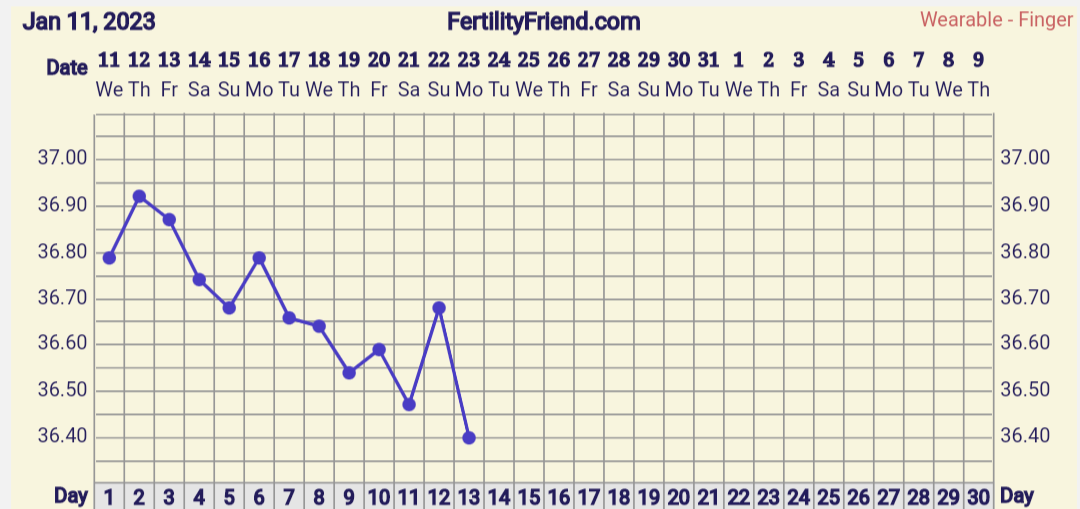 Täällä kp10 ja ens viikon lopulle ovista odottelen. Lämmöt ihan mukavan tasaiset vaikka mittaamisaika on heitellyt aika paljonkin epäsäännöllisten heräämisaikojen vuoksi.