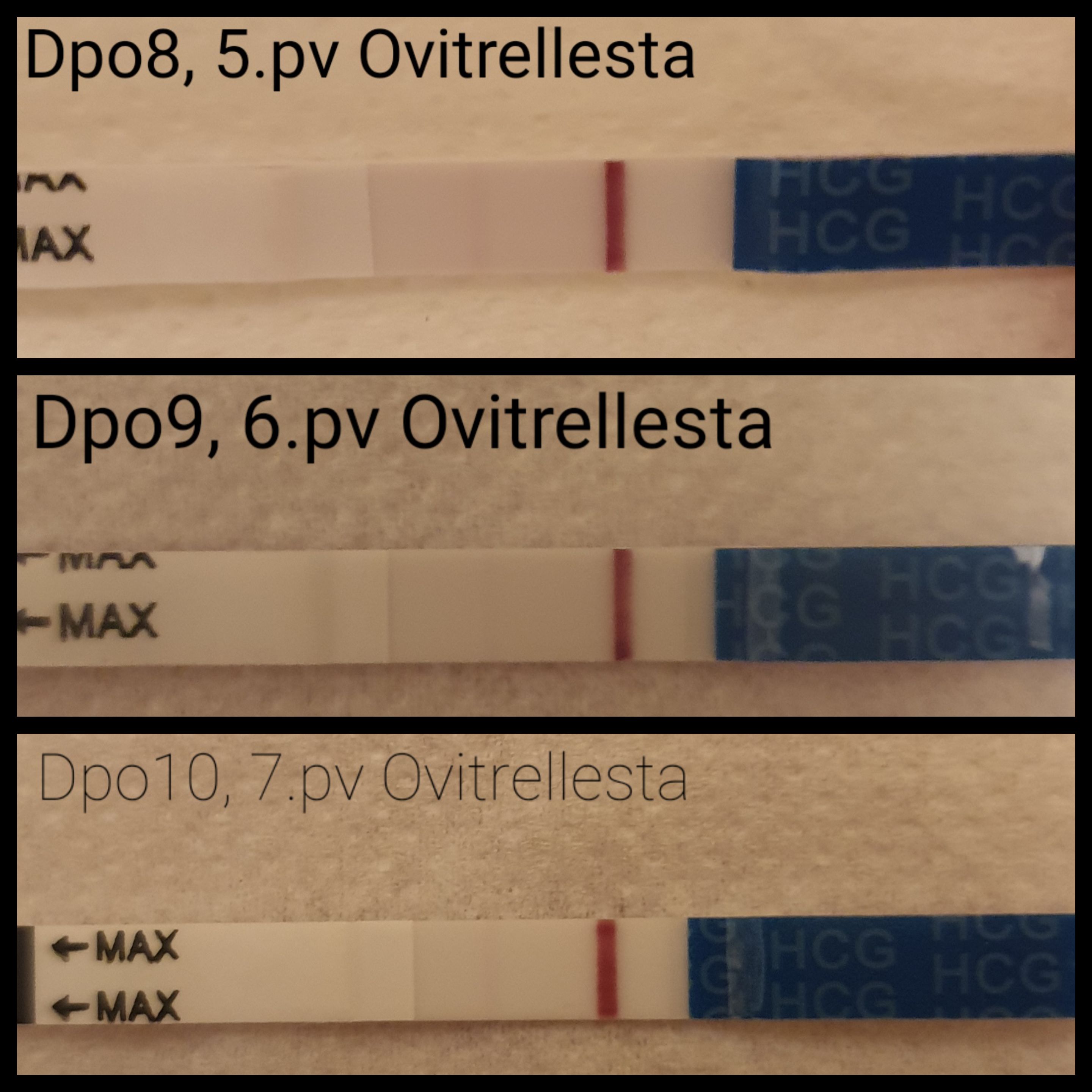 TÀÀllÀ ei muuta raportoitavaa, kuin ettÀ hitaasti tosiaan haalenee Ovitrelle r-testissÀ. Kollaasi: