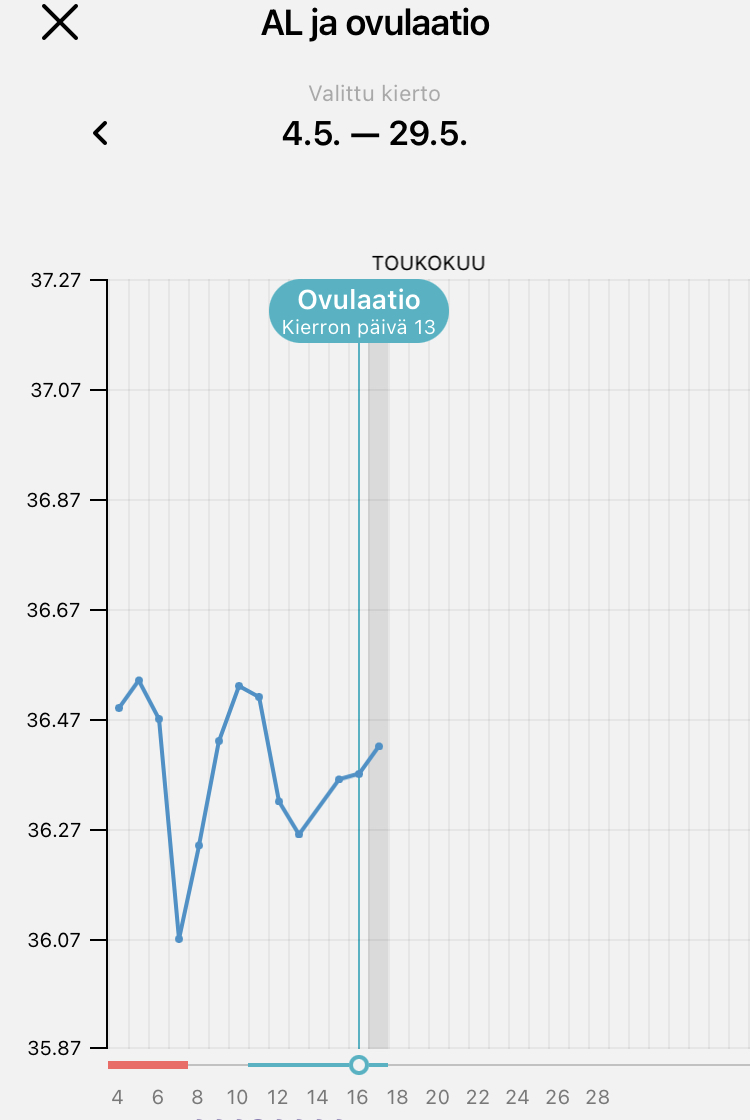 @Oikku95 ootko tehnyt raskaustestiä? Milloin ajattelit tehdä? Nuo sun lämmöt näyttää kyllä tosi hyvälle 🤞