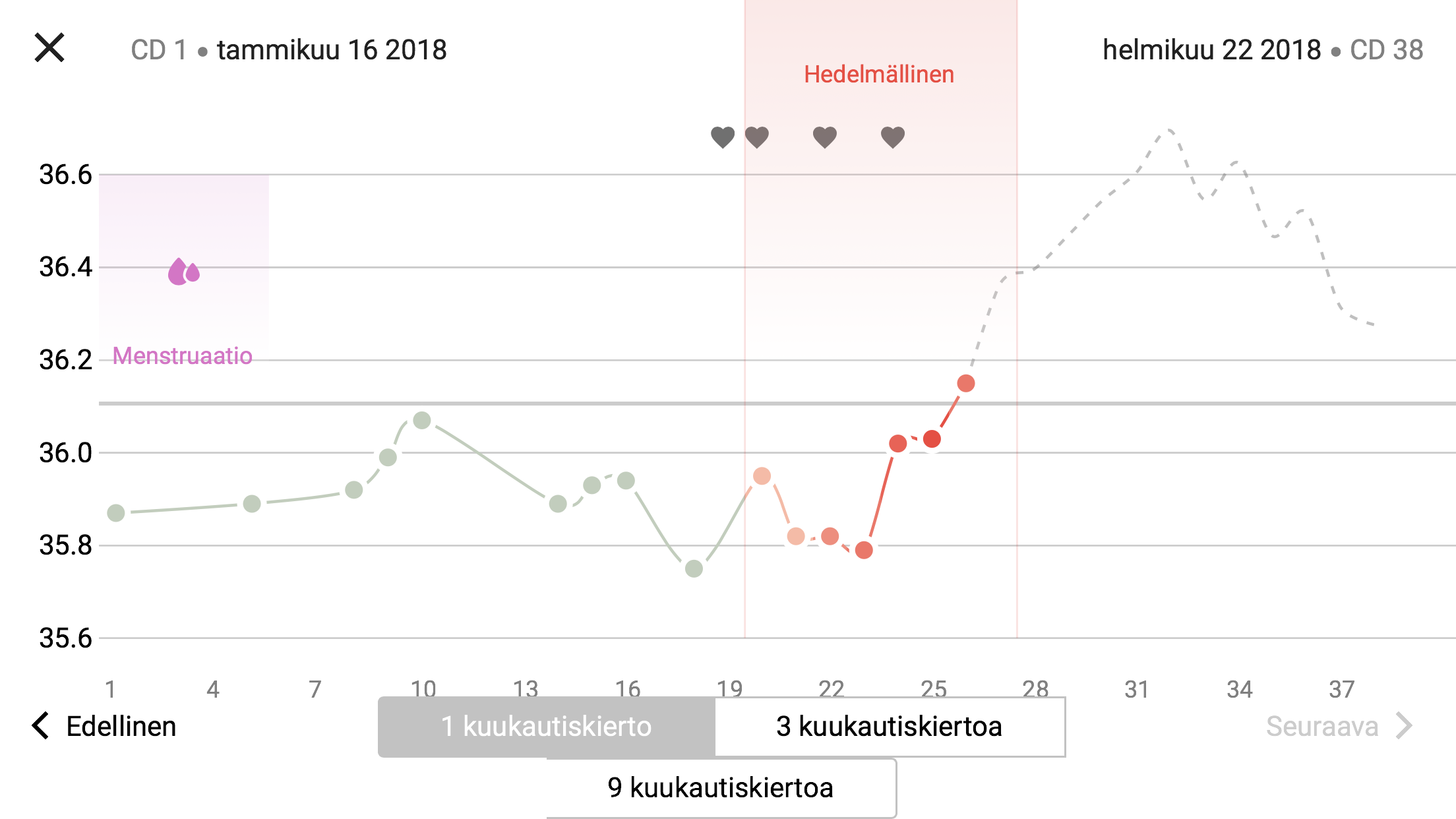 Vaiana, mulla oli tärppikierrossa lasku dpo 9-10 ja dpo 11 pomppasi ylös. En tiedä, oliko kiinnittymisestä jotuvaa vai mitä, mutta ei nyt vielä kannata heittää pyyhettä kehään:)