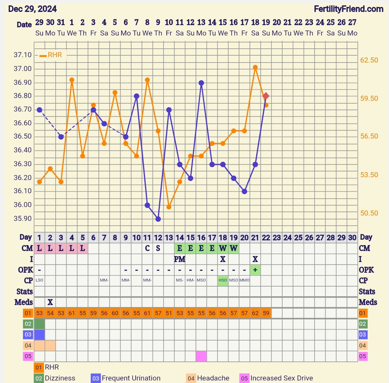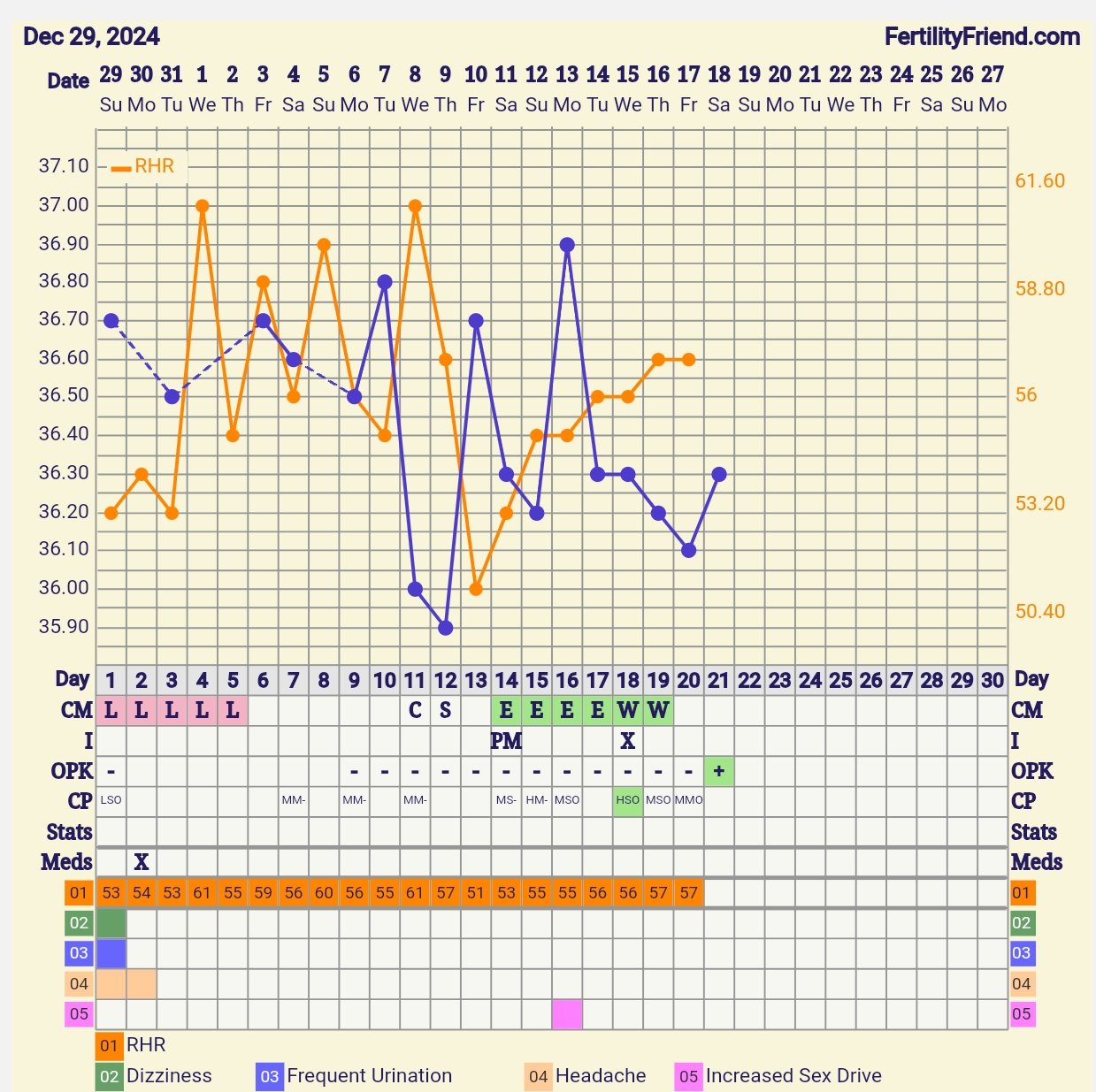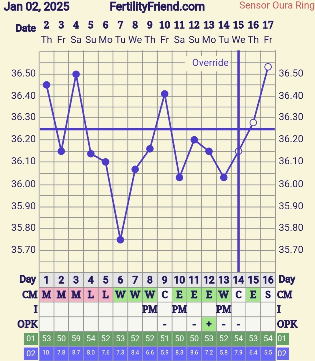 TÀÀllĂ€ nyt menossa alkuluteaali. Ovis taas tĂ€ssĂ€kin kierrossa vĂ€hĂ€n auki, et mihin se nyt tarkalleen osu, kun mitÀÀn selkeetĂ€ oviskipua ei ollut ja lĂ€mmöt noussu pikkuhiljaa. Valkovuoto kans ollu vĂ€hĂ€n erikoista, ettei oo ollu oikeen selvÀÀ, et mitĂ€ siitĂ€ merkkais, ku moni vaihtoehto sopis. Vahvin ovistesti oli kp12, hassua kyllĂ€, ettĂ€ premom ei tĂ€llĂ€ kertaa antanu millekÀÀn testille high tai peak, vaikka siel oli useempi testi yli 0,6, mistĂ€ on aiemmin mulle antanu aina arvoksi high ja sille korkeimmalle sit peak. đŸ€·â€â™€ïž Nyt kaikki vaan low premomin mielestĂ€. Mut eipĂ€ sillĂ€ vĂ€liĂ€, selkee LH-piikki siinĂ€ paikkeilla kuitenkin oli. Oura merkkas oviksen paikaksi kp13, vaikka en ollu ovistestiĂ€ sinne merkannu ja lĂ€mmöt meni ekaa kertaa yli 0,0 rajan vasta kp15. Mielenkiintoista siis, et mihin se perusti tĂ€n pÀÀtelmĂ€n. Ihan vaan siihen, et kp14 oli jo vĂ€hĂ€n noussu lĂ€mmöt? Jaa-a. MĂ€ ehkĂ€ ite kaiken tĂ€n datan perustella veikkaisin, et ovis on ehkĂ€ ollu kp14. đŸ€” Joka tapauksessa nyt on kuitenkin selkeesti mennyt jo.