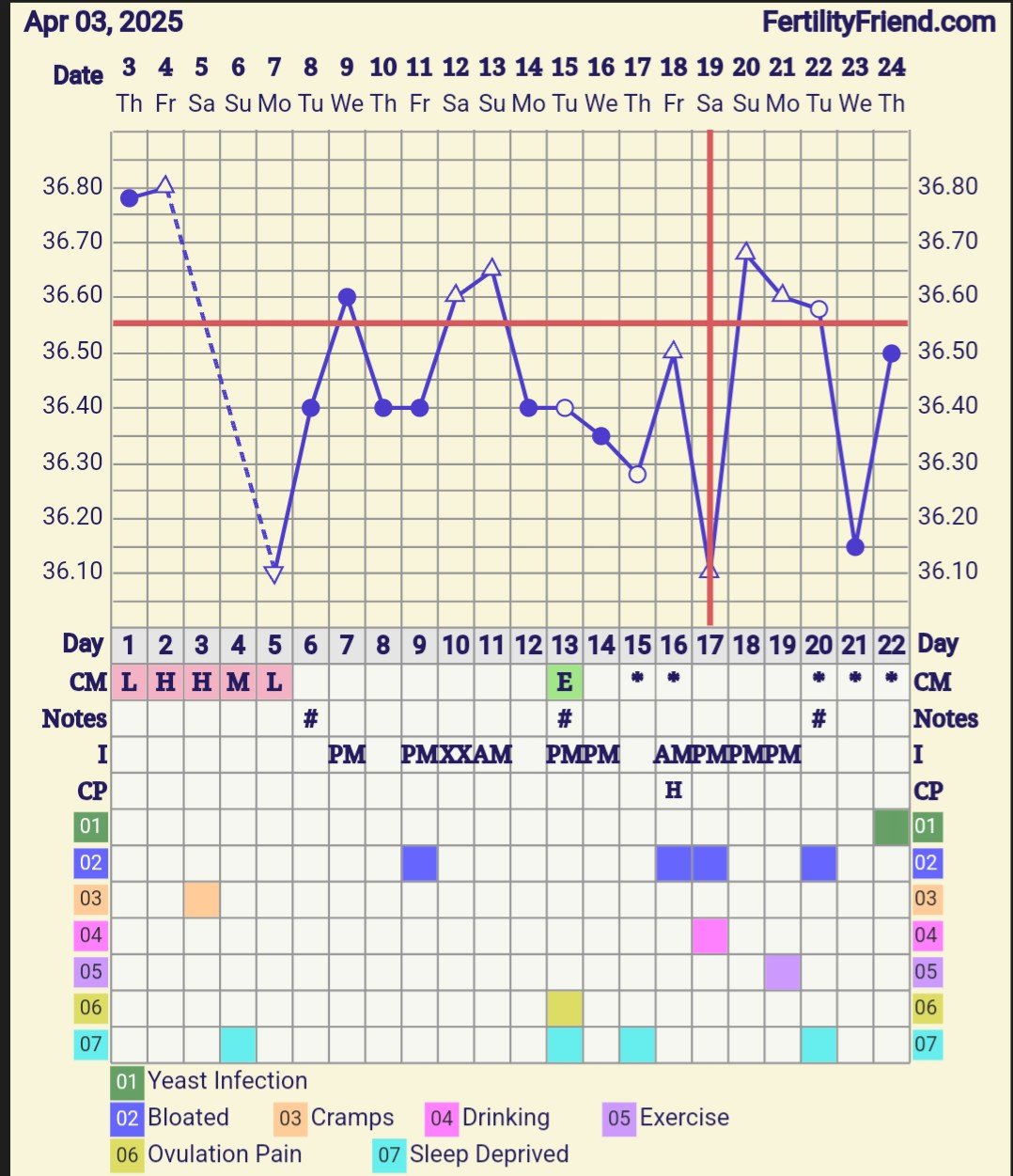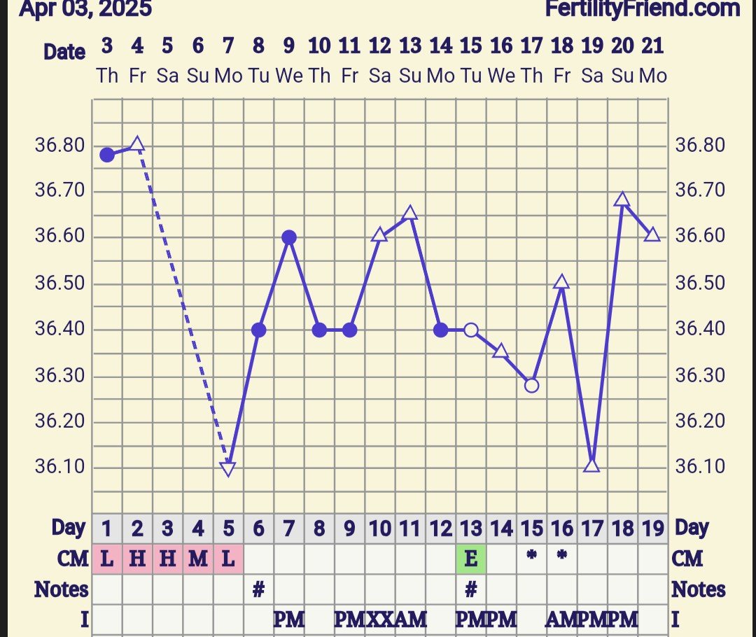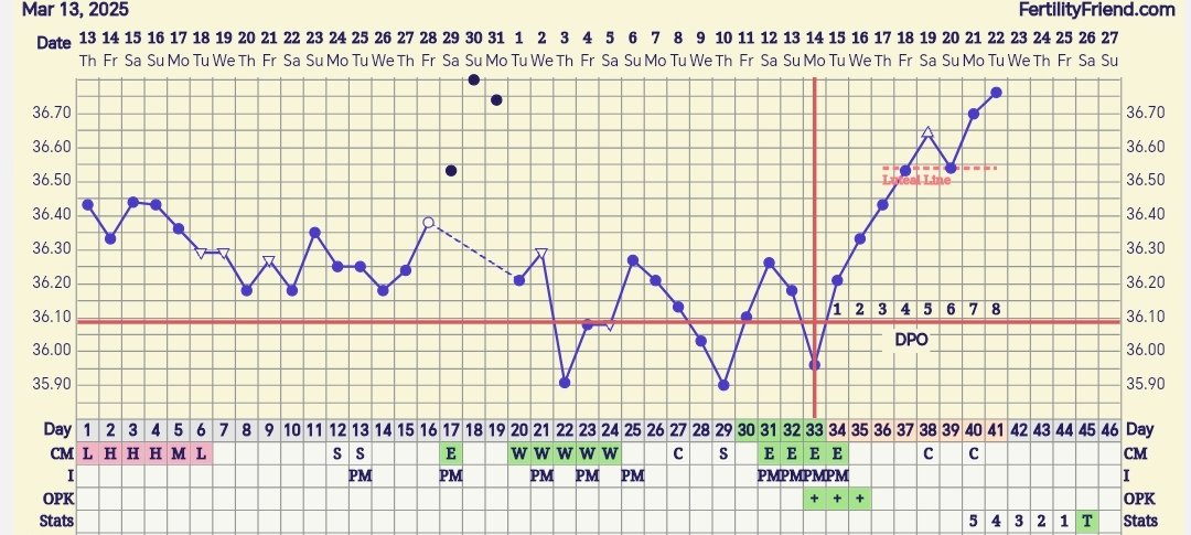@Yrttiteetä tekisi mieli lomaheräämiset asettaa kyllä haasteita jonkin verran, mutta sun käyrää kun katsoo niin jotenkin voisi ajatella oviksen tapahtuneen 🤔 Toki tulevat mittaukset kertoo myös paljon, toivotaan että lähtee kunnon nousuun! 🌈