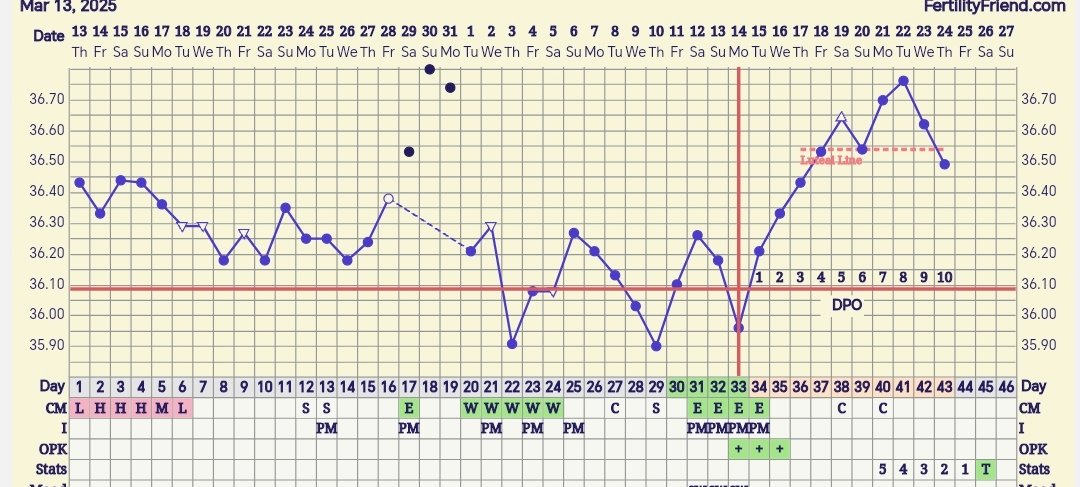 Heippa! 😊 Olen hetken aikaa lueskellut täällä taustalla ja nyt hyppään mukaan kun ensimmäistä kertaa olen tässä kierrossa lämpöjä mittaillut. Yritystä takana enemmän tai vähemmän puoli vuotta, pillerit jätettiin syyskuussa -24. Mulla on melko säännöllinen kierto ollut pillereiden lopettamisen jälkeen, mikä tietysti helpottaa kierron seurantaa, oon kuitenkin välillä pohtinut että jääkö ovis tapahtumatta positiivisista ovistesteistä huolimatta niin ajattelin kokeilla tätä sitten sen varmistamiseksi. Ilmeisesti lämpökäyrä nyt näyttäisi sitä ajatellen melko hyvältä ja saatiin kohtuullisen hyvällä aikataululla tallettelutkin onnistumaan 🤞 Meillä ongelmina ovat olleet miehen krooninen sairaus joka ei suoraan vaikuta hedelmällisyyteen, mutta voi alentaa siittiöiden liikkuvuutta ja määrää aktiivivaiheissa ja itsellä on ollut todella niukasti, jos ollenkaan, hedelmällistä vv. Tässä kierrossa oli omaan vaivaan apuna N-asetyylikysteiini ja ero on kyllä ollut aivan merkittävä, siksi toiveet ovat hieman korkeammalla tämän kierron suhteen ✨ FF mukaan tänään dpo3, premom sanoo dpo4, nyt ei auta kun odotella että miten käy 🤭