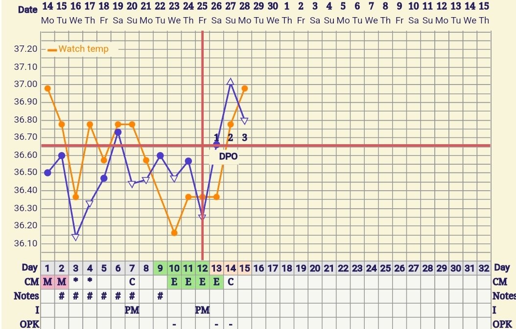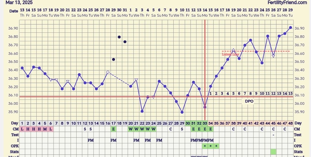 Mä luulen kanssa, että dpo 13 on lähempänä totuutta kun katsoo tuota sun käyrää. Nyt toivotaan että pieni pysyy matkassa ja viivat jatkaa vahvistumista