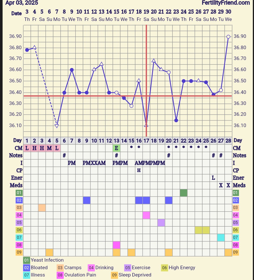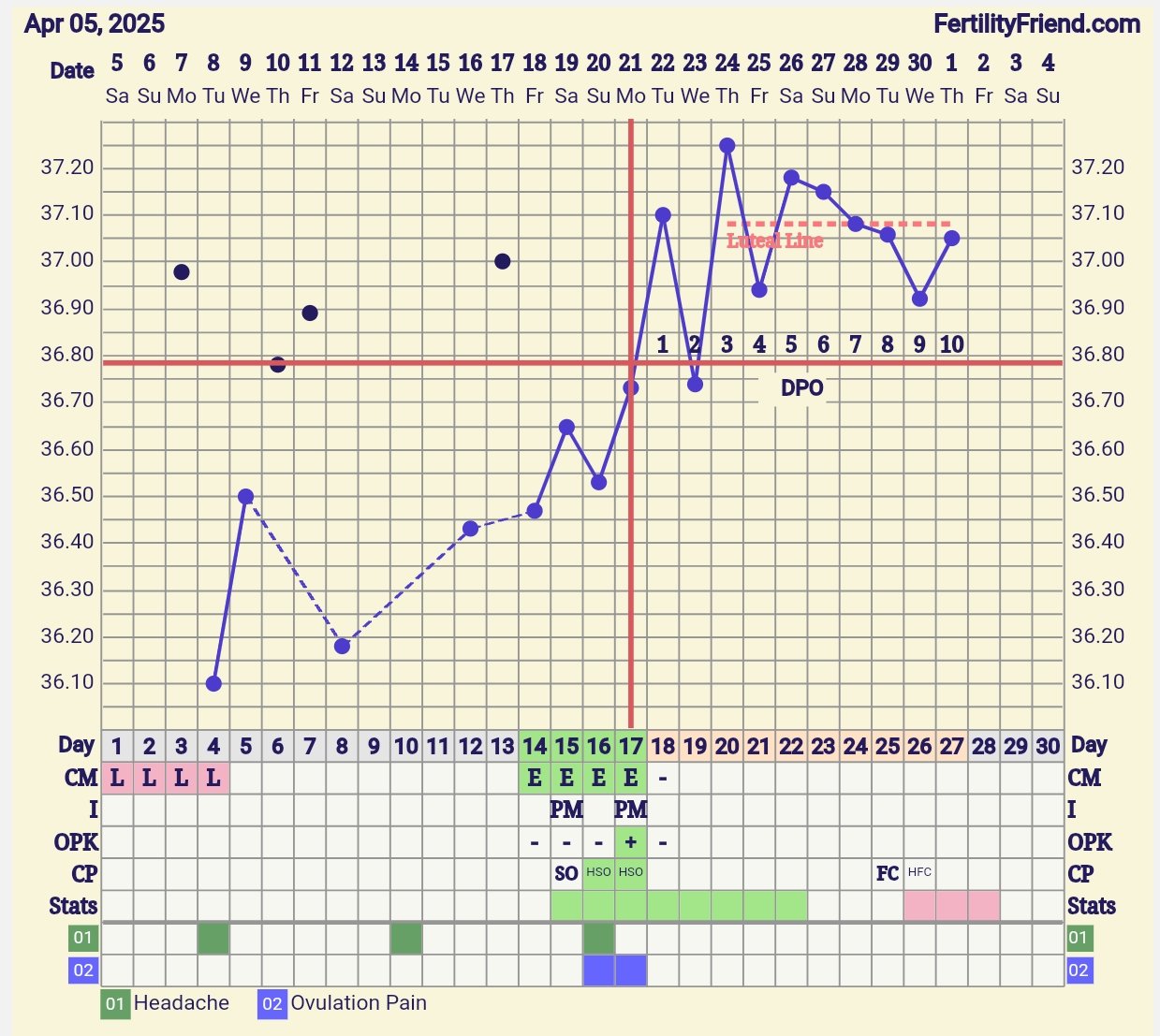 Täytynee vaan luottaa siihen monitorin sanomaan. Tai jos ei ala menkkoja kuulumaan, niin sit kaupasta testejä kehiin.