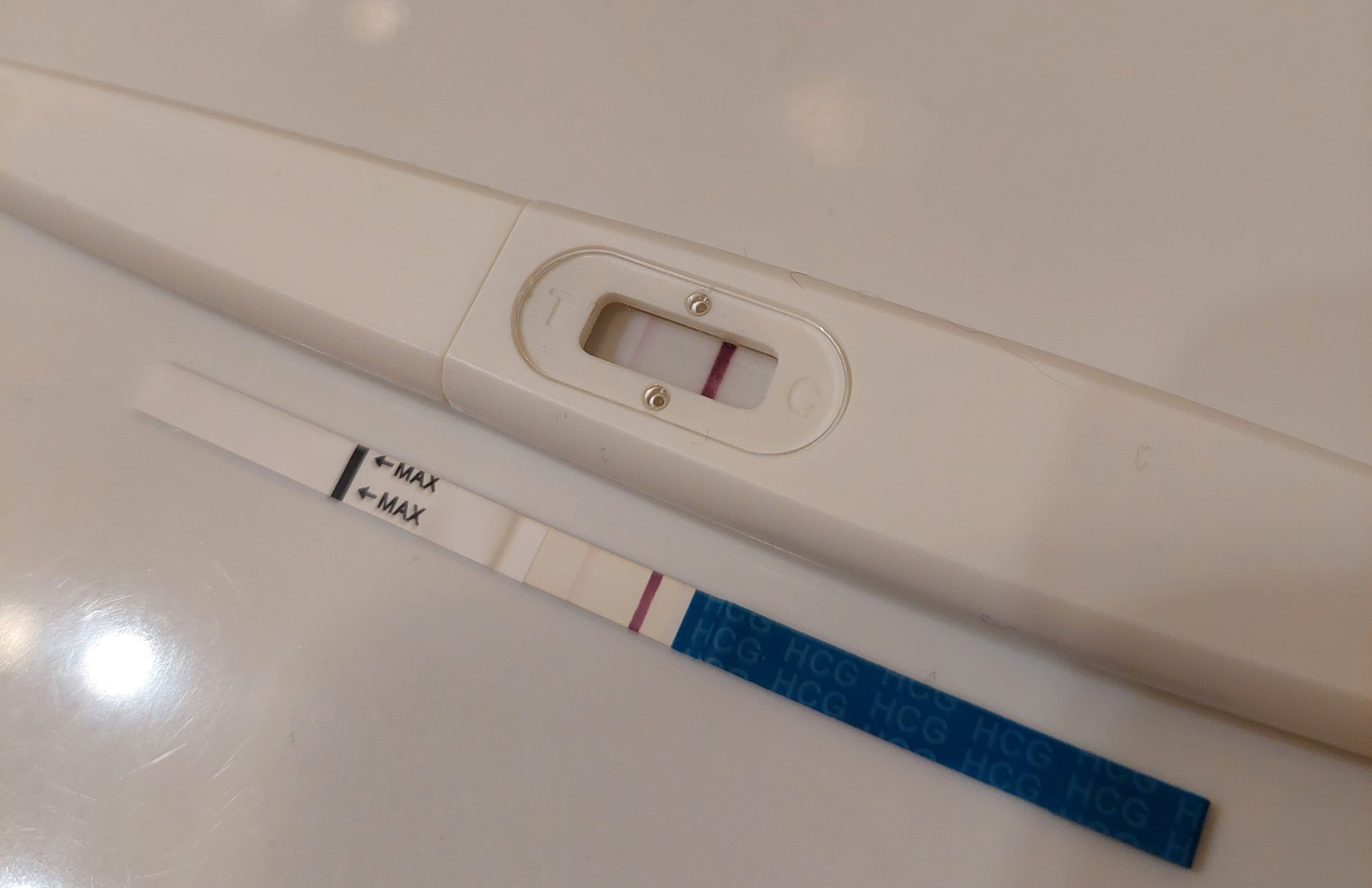 Tänä aamuna (dpo11) sit päätin testaa, et voin lopettaa luget, jos ei mitään oo. Ja tattadaa se olikin plussa. Olin just kiireessä kaverille lähdössä ja piti laittaa sille viesti, et öö mul meneekin viel hetki. Tein sit heti toisenkin testin varmistukseksi. Aika vahvat viivat ottaen huomioon, että dpo9 oli viel nega. Piti kaivaa se testi esiin ja viel uudestaan tiirailla, et miten siinä ei ollu mitään (rfsu herkkä), kun nyt tuli jo niin vahvat viivat. Ehkä se oli sit se, kun tein sen iltapäivällä, enkä aamusta. Pidätys oli klo5-12 sen yövuoron jälkeen. Et jos olis ollu normiyö ja aamulla testaus, niin olis sit haamulainen ollu. Eilen olis vähintään jo näkyny, jos olisin vaan testannu.