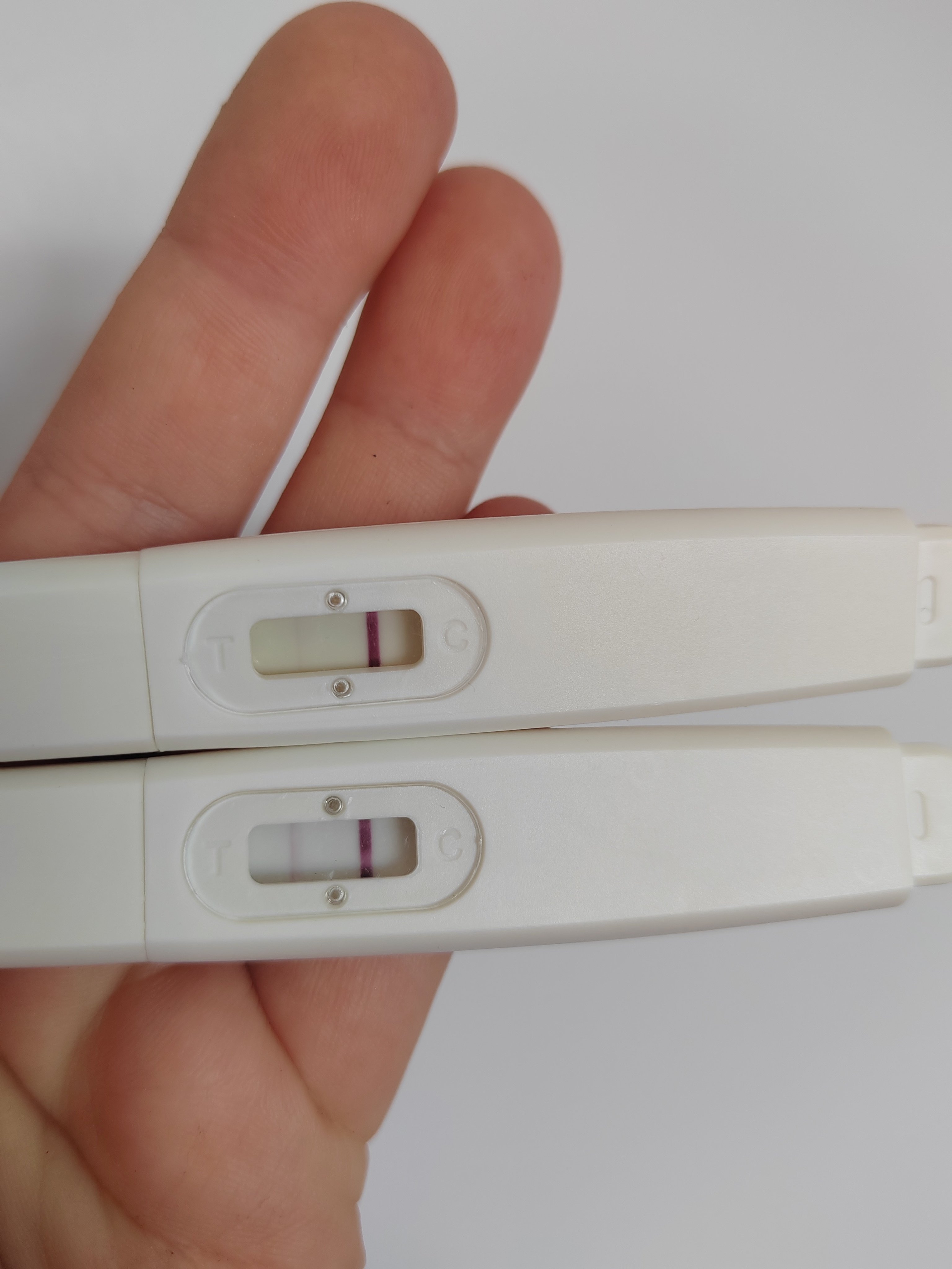Nyt omaa napaa ja hämäriä testikuvia liian aikaisin testattuna 😅🤣 Mua nolottaa jopa kirjoittaa tänne, mutta päätin tänään testata dpo8, kun aamulla herätessä oli outoa vatsakipua, samantapaista mitä edellisen raskauden alussa/kiinnittymiskipuna.. Toki tiedän, että jos kiinnittyminen tapahtuisi nyt, ei testeissä näkyisi mitään 🤣 mutta omaan silmään tässä testissä näkyy viivanpaikka tai super-haalea haamu 🤔 ylempi testi tehty dpo7, jotta voisin vertailla mahdollisia viivanpaikkoja negatiiviseen testiin (joo, mulla taitaa olla 100 ovis ja raskaustestiä amazonista tilattuna, eli dippailen niitä ilman säästämisiä)
