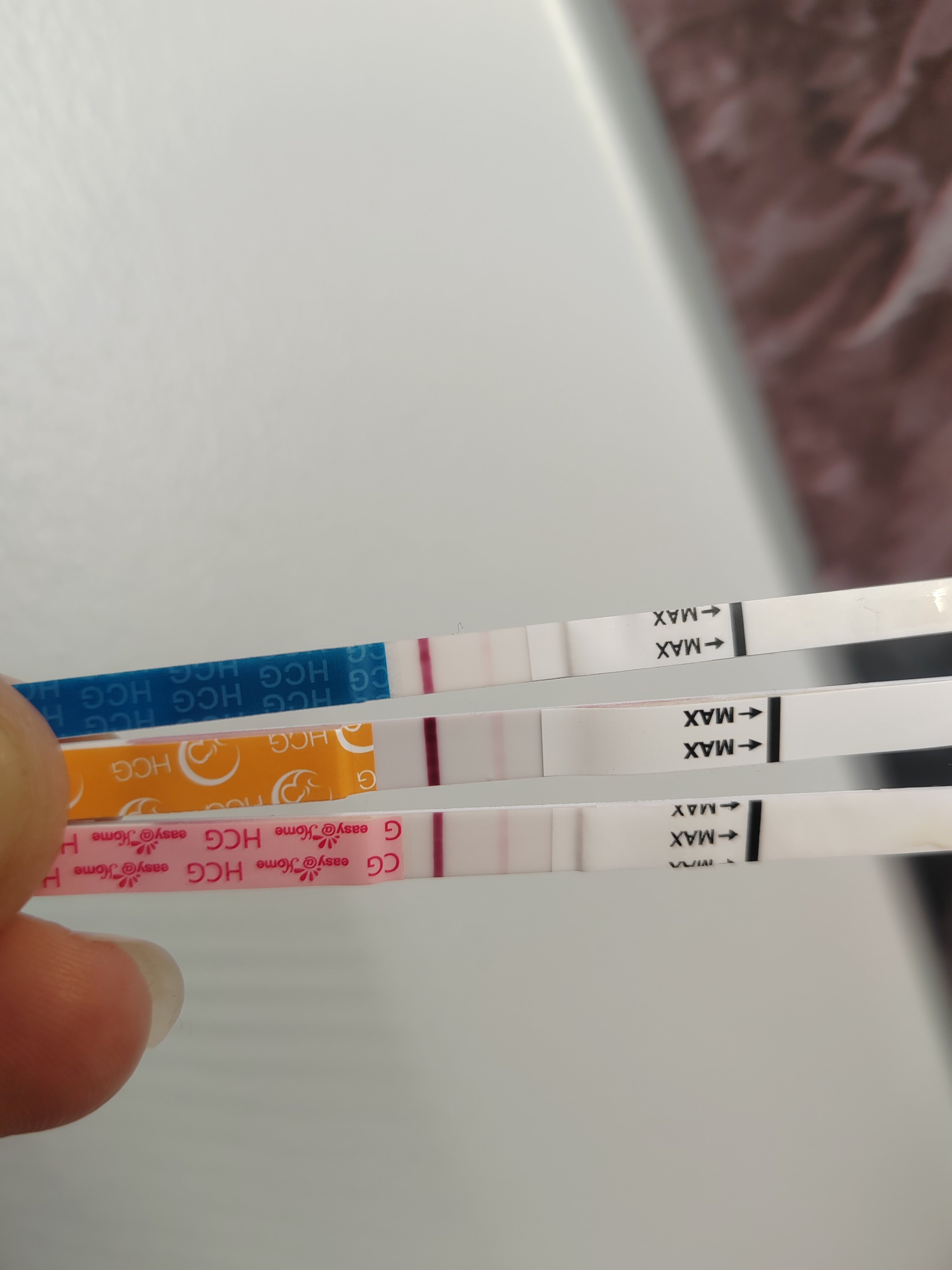 Tein raskaustestit kp 27,28 ja 29 sekä 32 ja ne oli negatiiviset. Lukuunottamatta pientä haamuviivaa kp27 testissä.