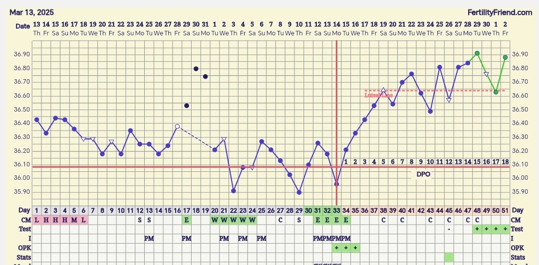 Mut joo, vähän semmonen wtf olo ja toisaalta semmonen jaha vai niin. Vaikea selittää 😅 Oireita kuulostelen ja ei kyl oo mitään, ehkä vähän sitä tuttua jomoa, jota joka kierrossa, mut ei semmosia raskausmääriä. Hassua kyl, et vaikka oireita ei oo, ovis oli kp8 ja lämpökäyräkin vähän alaspäin menossa, niin silti mulla on täys luotto, et this one is the one. 🤷‍♀️