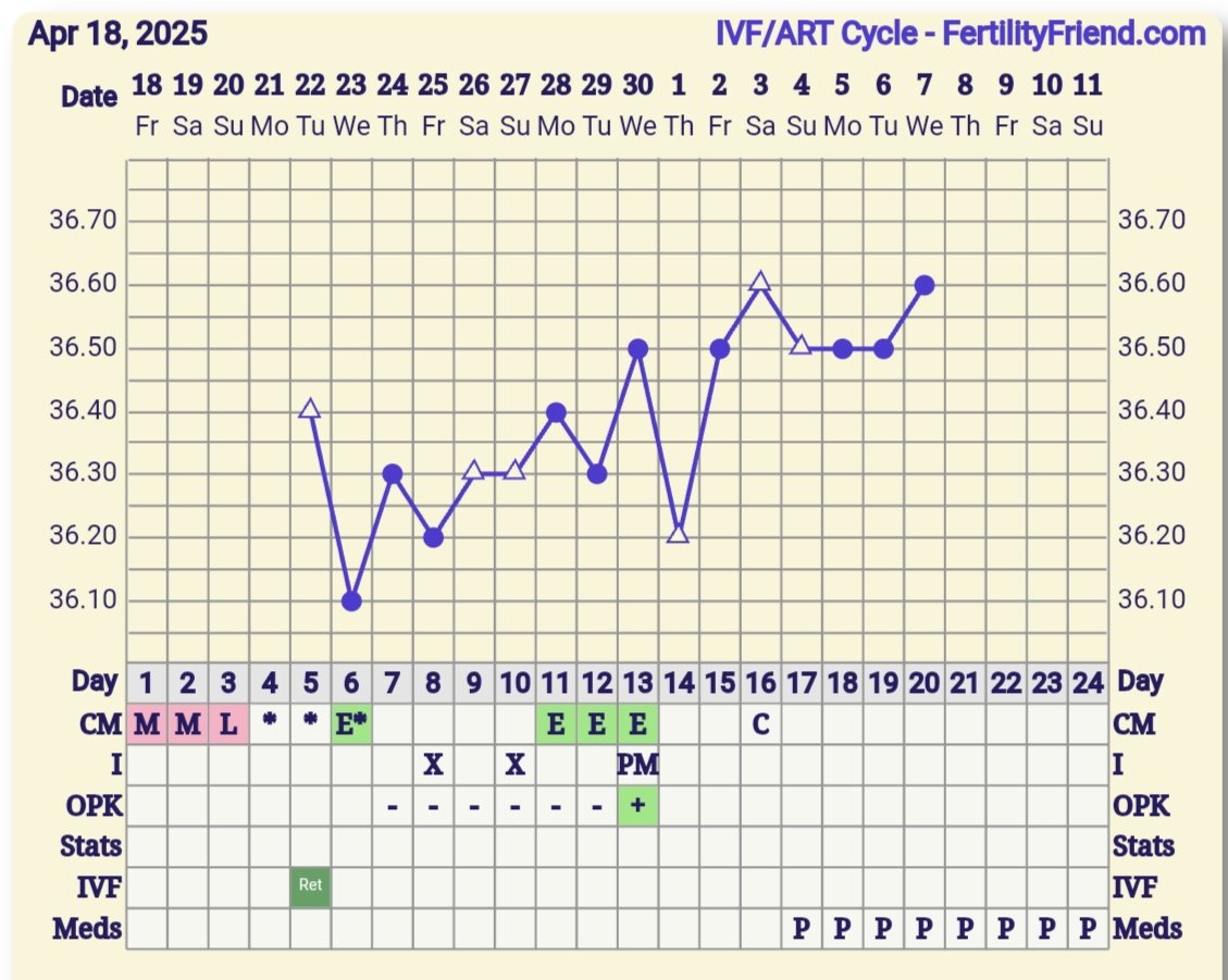 Pääsin sittenkin piinailukerhoon mukaan, hyvin saatiin vielä hyödynnettyä ovis toimenpiteen jälkeenkin🤭 vaikka fyysistä ponnistelua pitääkin parisen viikkoa välttää, niin ei ollu mitenkään kipeä. Se alue mistä on menty sisään on sielä nivustaipeen lähellä sellainen millin mittainen piste. 😅 Eli rauhakseltaan. Tosin, mulle tuli joku flunssatauti joka näemmä vähän lämpöjä nostaa, koska mulla ei ovisnousut oo näin räjähtäviä ja vähän päässä muutenkin tuntuu sille, että lämpöä on vaikka ei kuumetta. Laitoin nyt sit manuaalisesti oviksen tuohon kp14 kohdalle, toki voi olla että on ollu jo kp13.. FF heitti oviksen jo kp11 kohdalle joka nyt ei ainakaan varmasti ole totta😂