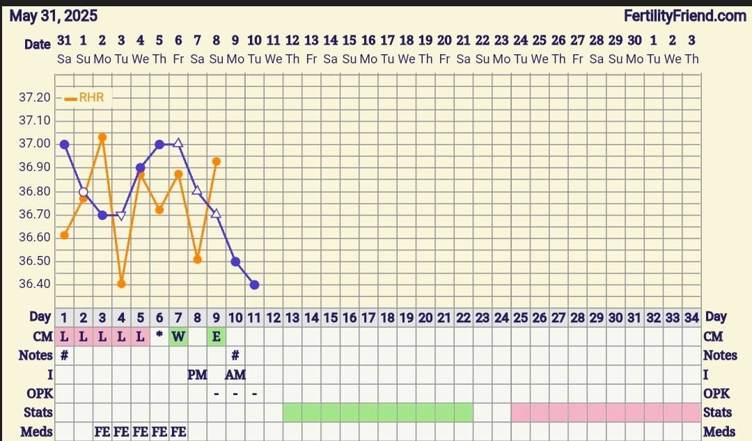 Täällä lämmöt ja sykkeet vieläkin koholla, mutta kokoajan vaan oma fiilis on vahvempi sen suhteen että ei oo tärppi kierto, käyrästä ja sykkeistä huolimattta😅 oma fiilis on aina ennenkin ollut oikeessa, että ehkä mielummin luotan siihen. Sykkeitä ja käyrää saattaa myös nostaa se, että mulla on tässä 10 päivän työputki menossa ja alkaa jo vähän painaa päälle🫣 tänään siis 9. työpäivä. Onneksi pääsee pian lomalle 🙏🏼mutta katsellaan, täysin en heitä kirvestä kaivoon mutta alan henkisesti valmistautumaan kuitenkin jo uuden kierron alkuun viikonloppuna😊