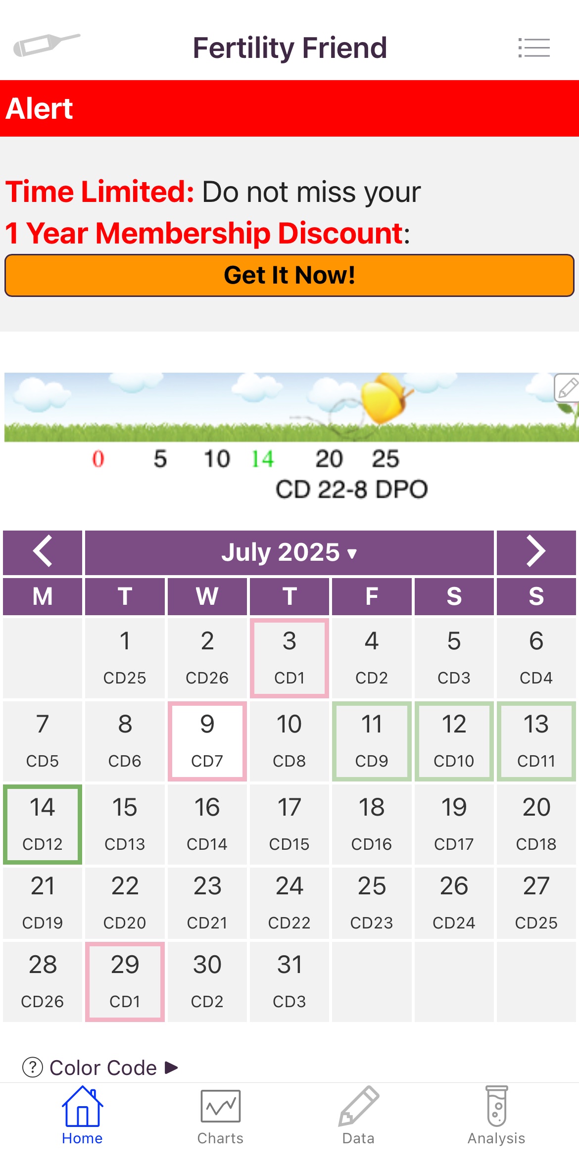 Sitten kysymystä, oisko täällä Fertility Friend -sovelluksen käyttäjiä? Ihmettelin että mitä noi vaaleanpunaisella reunustetut neliöt tarkoittaa? Vihreät liittyy varmastikin ovulaation ennusteeseen. Kuva malliksi liitteenä.