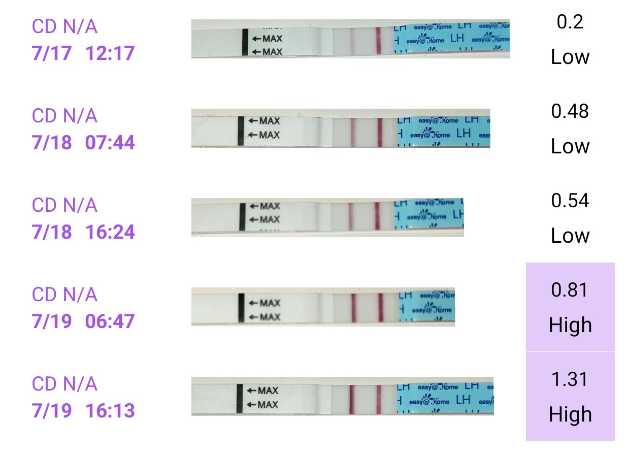 @vauvahaave36 Ovulaatio tulee yleensä positiivisesta ovistestistä 24-36 tunnin kuluessa, ja BBT lähtee nousuun 1-3 päivää ovulaation jälkeen, eli ovistestin jälkeen voi joutua odottamaan 2-4 (melkein jopa 5) päivää ennen kuin lämmöt nousee! Eiköhän se pian siellä näy! :smiling-eyes: Esimerkiksi mulla edellisessä "onnistuneessa" kierrossa ovistestit näytti positiivista 2 päivää ennen kuin haalistui (KP22 ja KP23), ja lämmöt nousi 3 päivää sen jälkimmäisen ovulaatiotestin jälkeen (KP26).