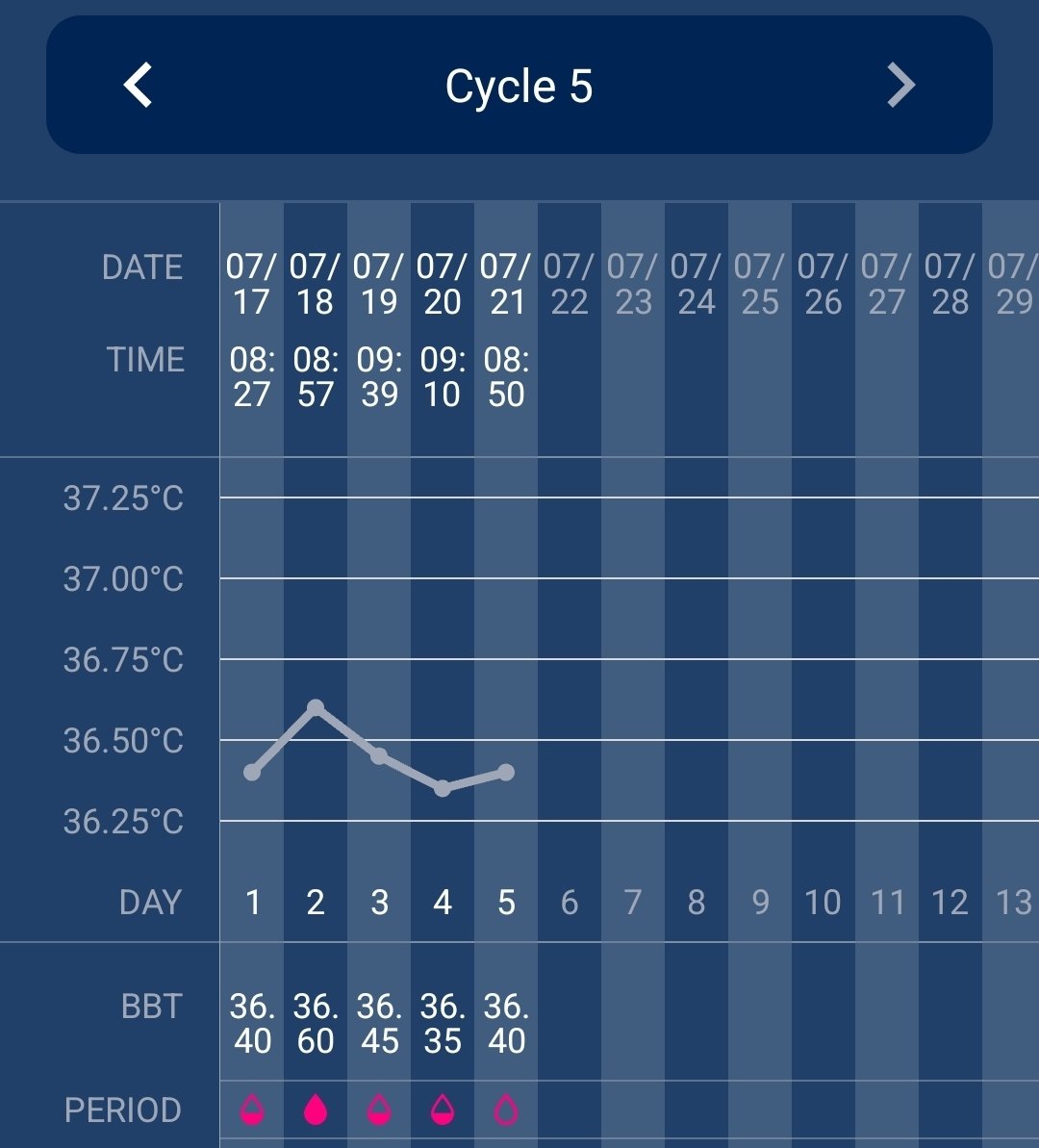 BBT - basal body temperature