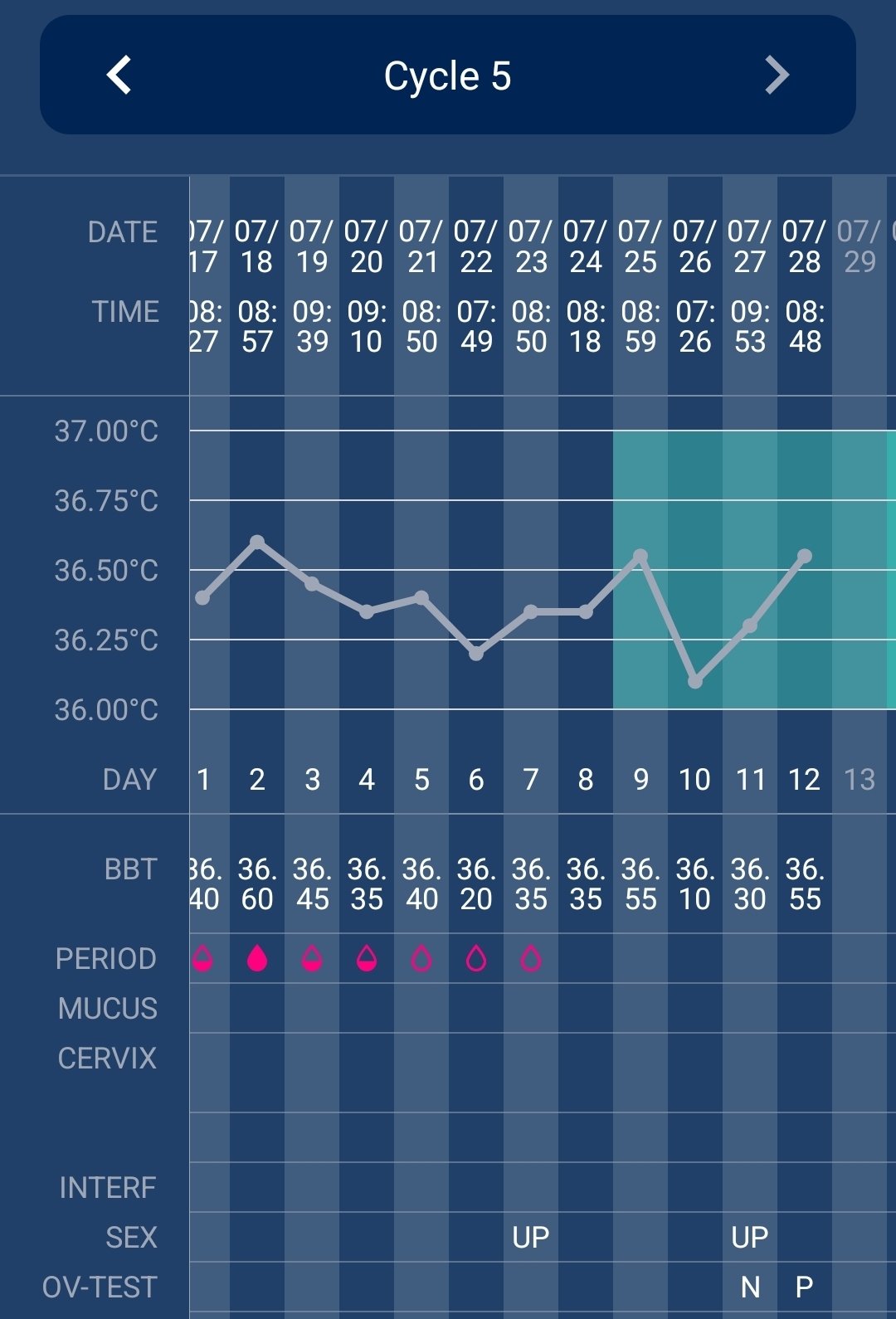 BBT - basal body temperature