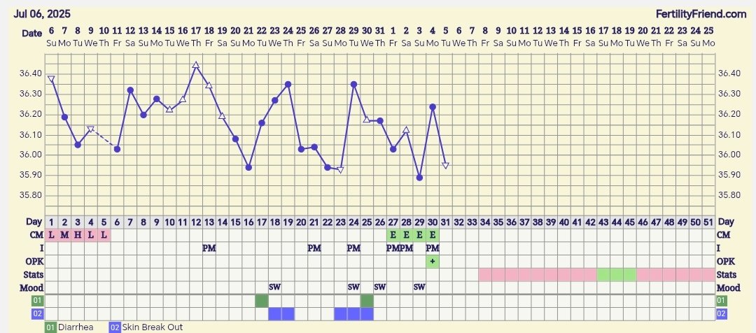 Tänään on vasta kp 11 ja tuo sylki positiivinen tuli jo kp 7 (toki odotettavissa että sylkitesti on positiivinen hieman ennen lh testiä…) kaippa mun keho vain on vielä hämmentynyt miten kierron kuuluisi tapahtua 🥲 jatkan lämpöjen kyttäystä kun ehkä ne paljastaa lopulta jotain.