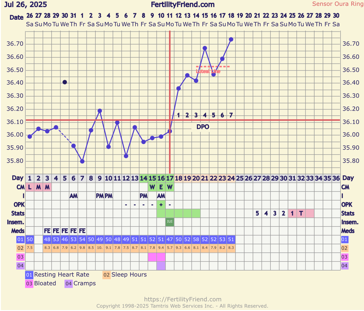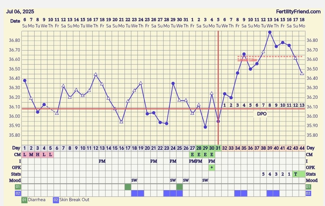 en nyt lisäile omaa käyrää vielä kun masentavan näköinen jotenkin. Sain ovisplussan testiin, lämmöt hivuttautui vähän ylemmäs mut ei todellakaan samoihin korkeuksiin kuin viime kierrossa. Vähän harmittaa, että onko huono merkki siirtoakin ajatellen...