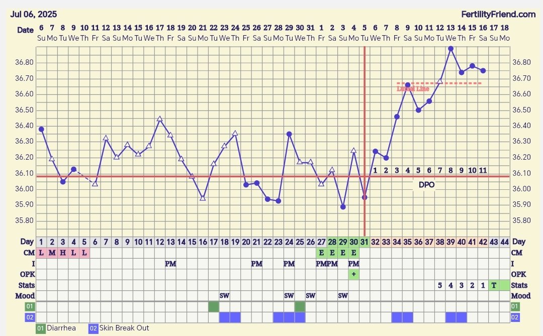 Olikos meitä muita tässä vaiheessa kiertoa menossa kuin @Rollo ja minä? Lupaavia luteaalilämpöjä on näkynyt, pidän peukkuja @Ness.