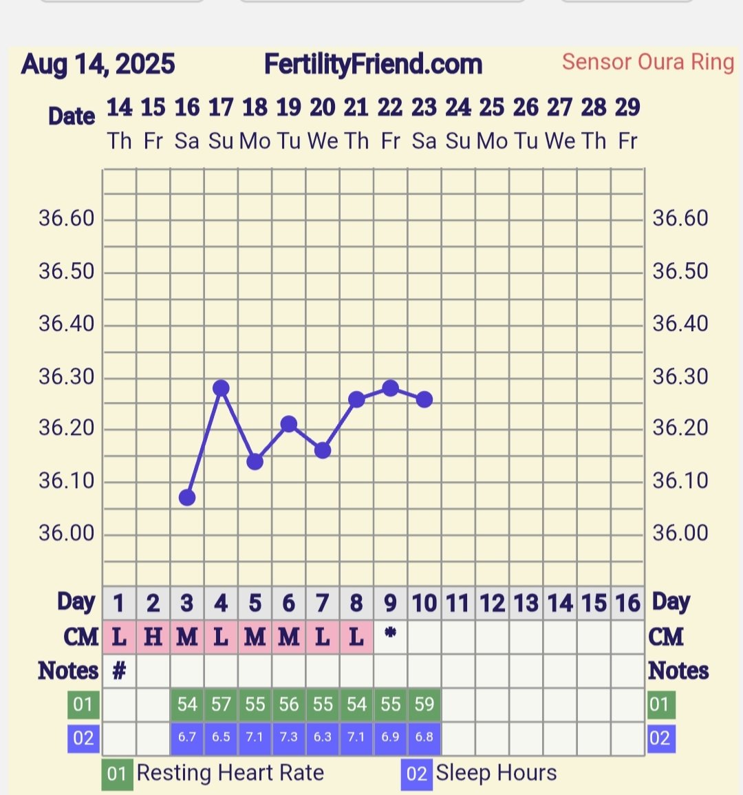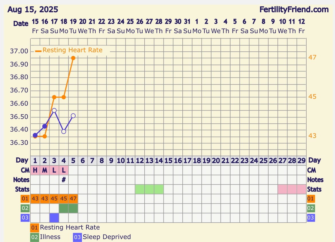 Ennen saanu watchilla hyvää lämpökäyrää mut nyt ollu viimeaikoina siksakkia ja tosi matalalla lämmöt. No koitin aamulla mittarilla suusta niin anto watchin lämpöön +0,64. (En merkannu ff käyrään ettei sotke) Eli täytyy siirtyä mittariin enskierrossa 😫 täytyy vaan käydä ostaa tarkempi mittari. Leposykkeen perusteella ovis ollu ja tänään olis dpo5. Ollu aikamoiset jomottelut alavatsalla tänään.
