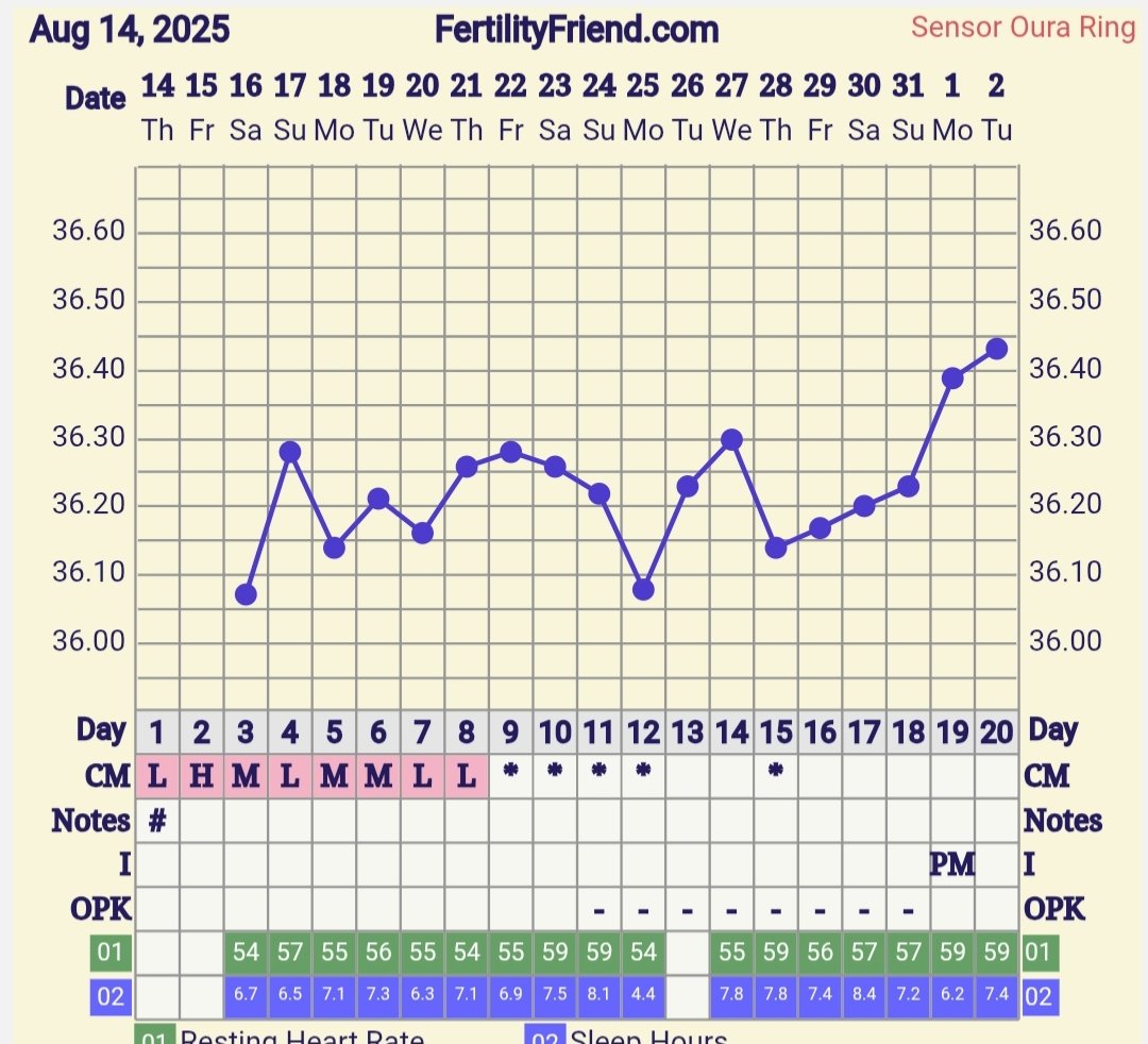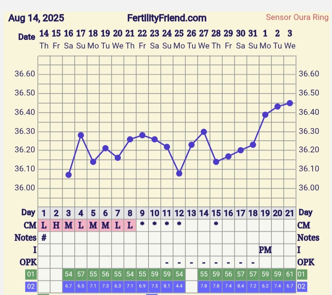 Edelleen noususuuntainen trendi, eipä tainnut eilisillan tallettelu ihan enää osua kohdalleen, en tiedä jaksaisiko sitä nyt piinaillakaan vai ei. Olisi myös näin jälkikäteen pitänyt olla tallettelematta, kun ensi viikon viikonloppuna olisi alkoholia sisältävä meno, mihin pitää ilmoittautua jo tällä viikolla. Vaikka todennäköisyydet raskautumiselle on joku 1%, niin silti mietin että "mitä jos, ja pitääkö olla ilmoittautumatta.." 🤦🏻‍♀️ Olisi pitänyt vaan antaa tämän kummallisen kierron mennä ohi ja aloittaa puhtaalta pöydältä ensi kierrossa 🫠