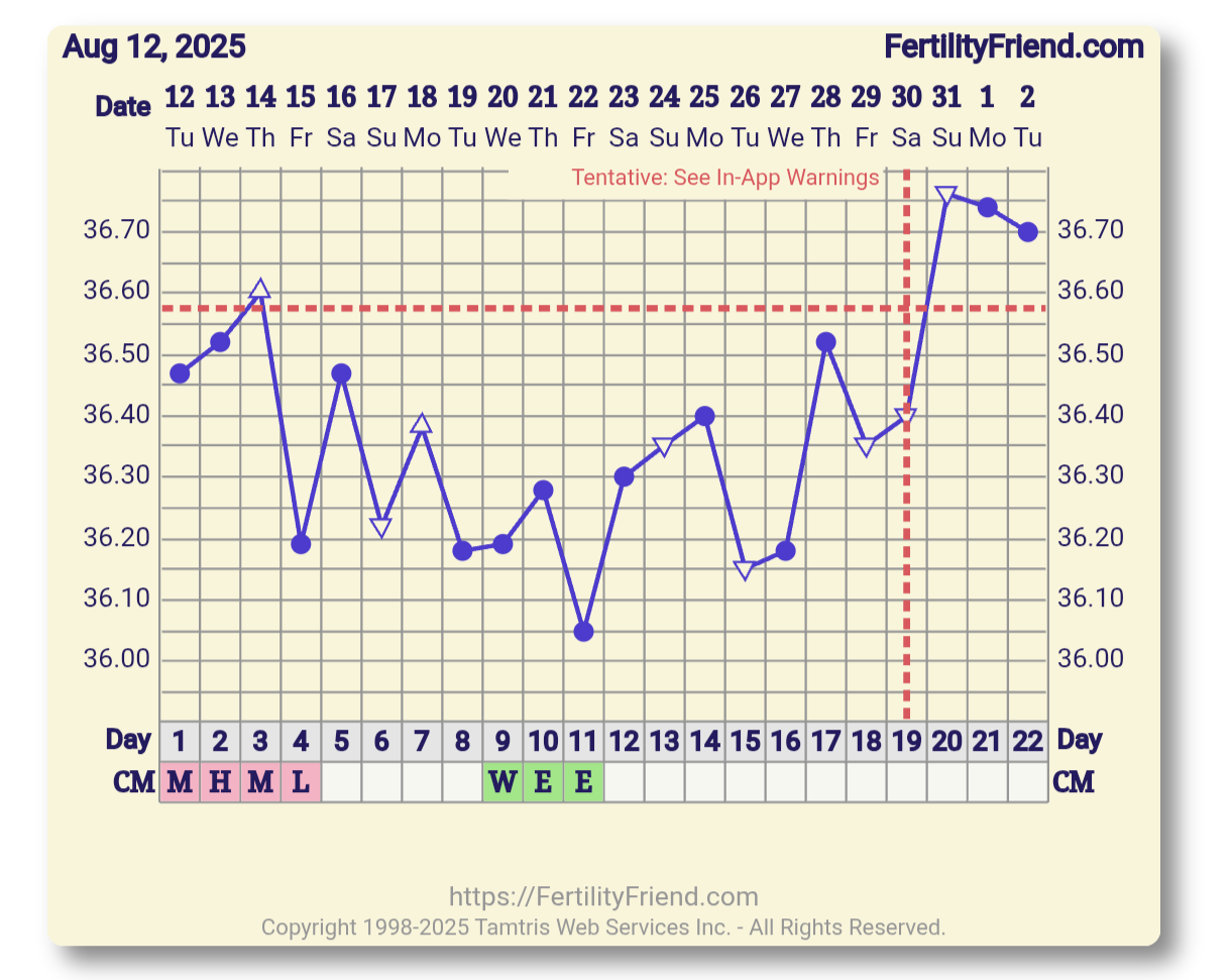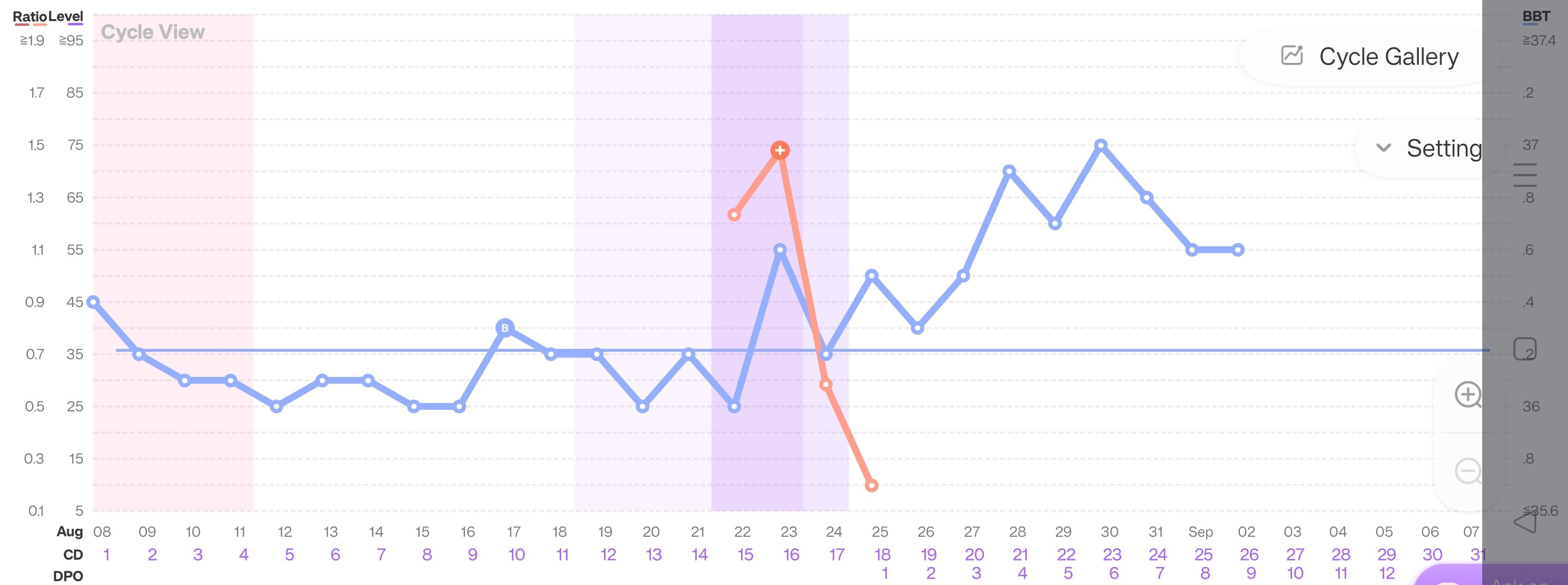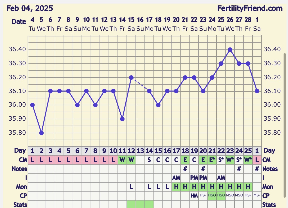 Tässä multa yksi ovuloimaton kierto. Estrogeeni nousi, mutta lh-piikkiö ei lopulta tullut. Aluksi FF merkkasi oviksen kp 20 kohdalle, mutta pudotti sen lopulta pois kun vuoto alkoi. Mulla oli tollon kiertoja sekottava kysta, niin oli muistaakseni aika epänormaalit oireet.Onko täällä kukaan onnistunut mittaamaan anovulaatio kiertoa?alkoi mietityttää että pysyykö ne lämmöt sit matalalla koko kierron aina seuraavaan ovulaatioon asti.