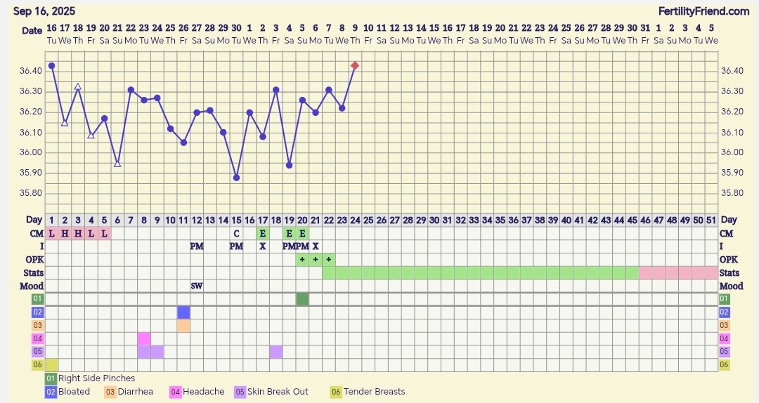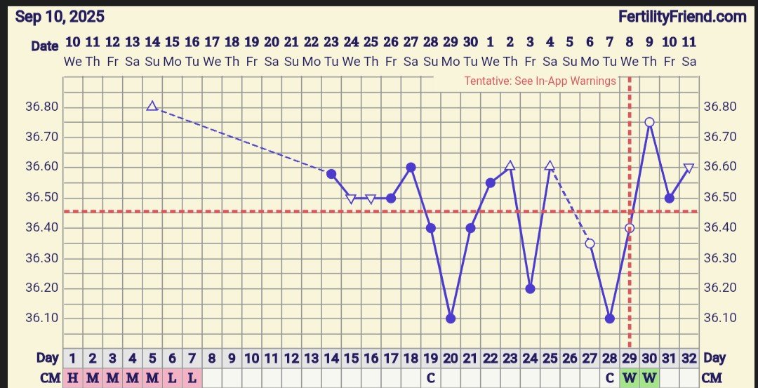 @Yrttiteetä tekisi mieli ovis on ihan nurkan takana jo ja tallettelut hyvällä mallilla.. Jos tänään oli jo ovis dippi niin on kyllä taas aikaista 🫣 Epäilen että huomenna tai ylihuomenna ovistesti plussa 👀
