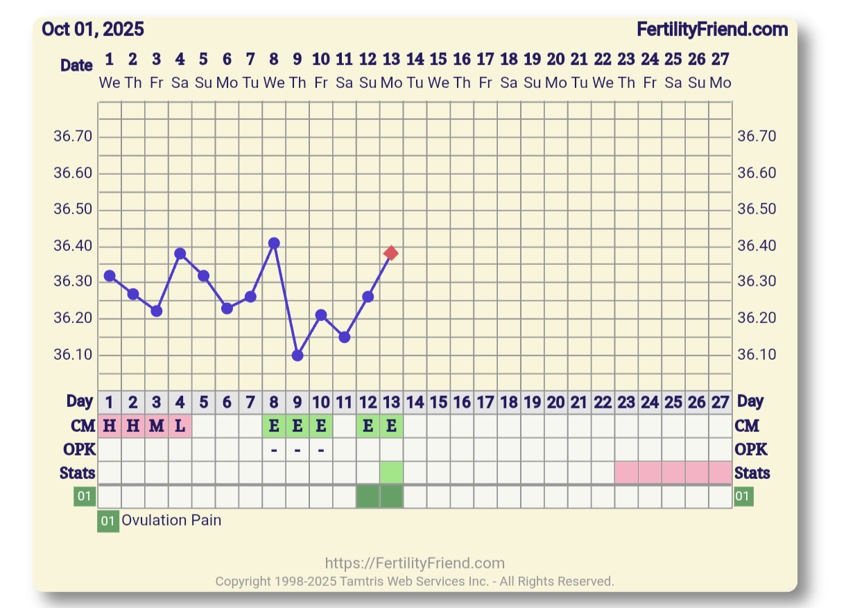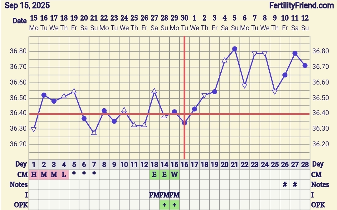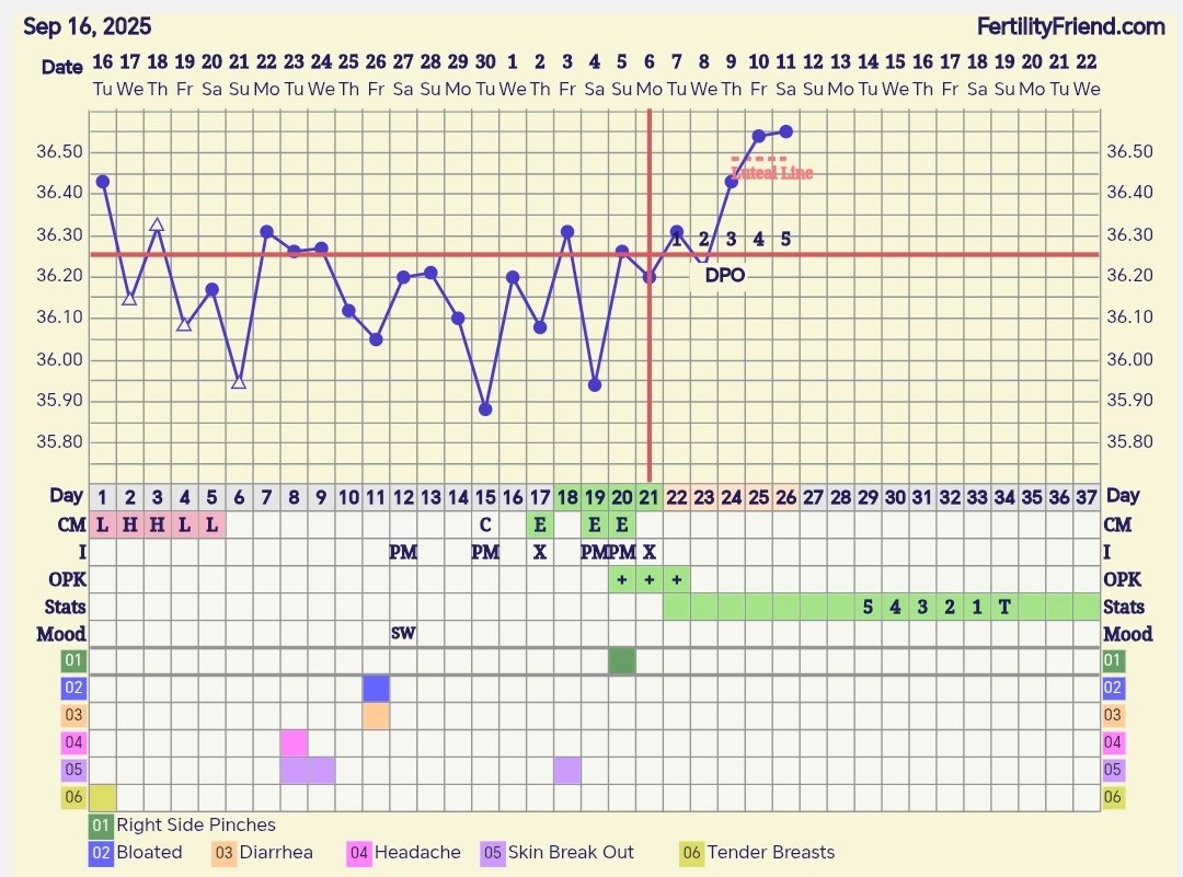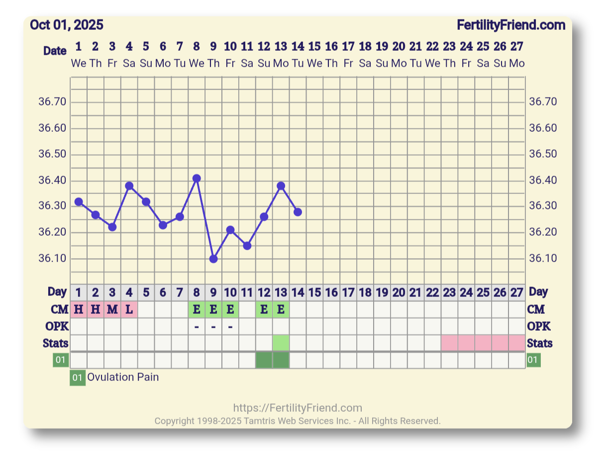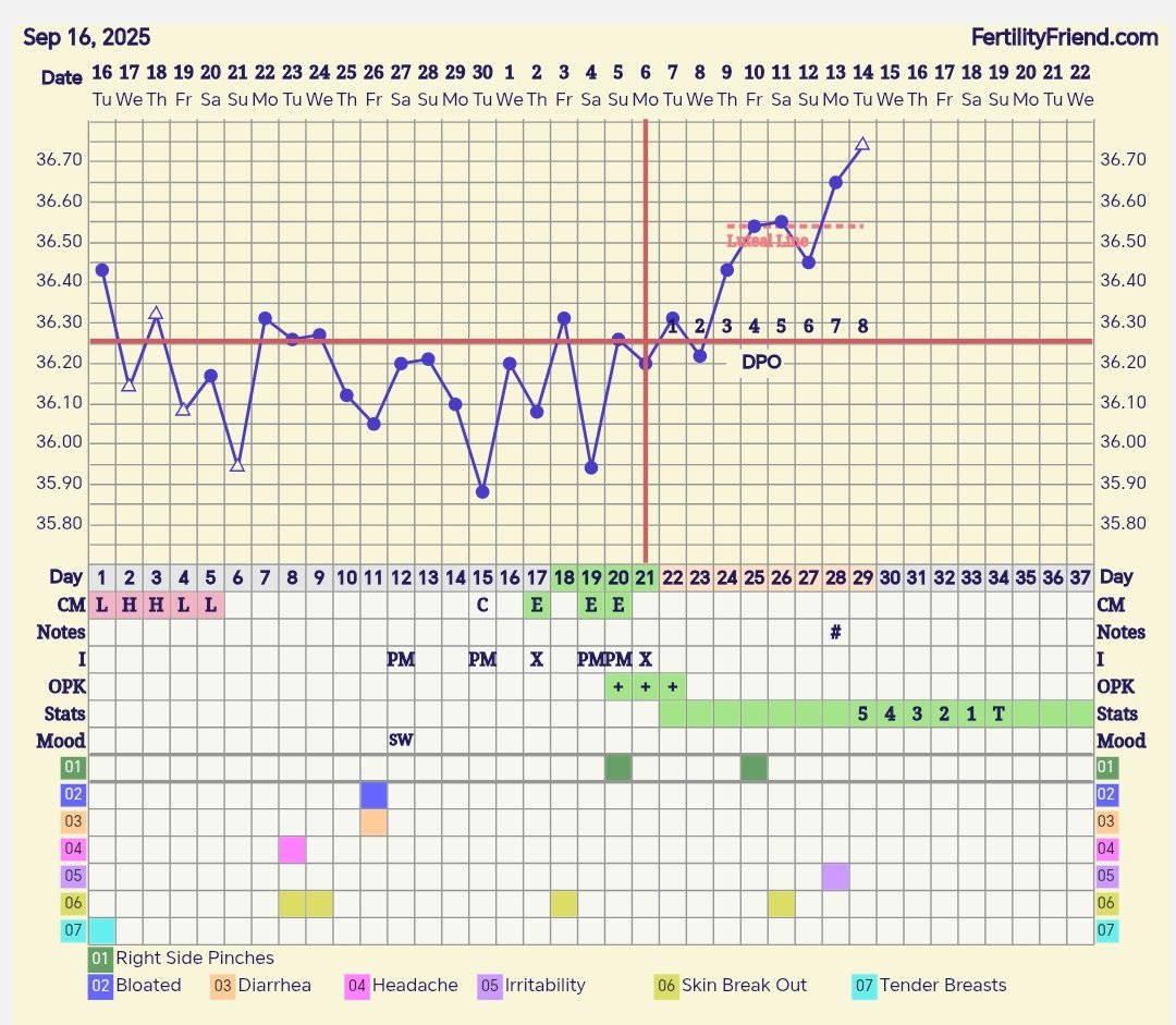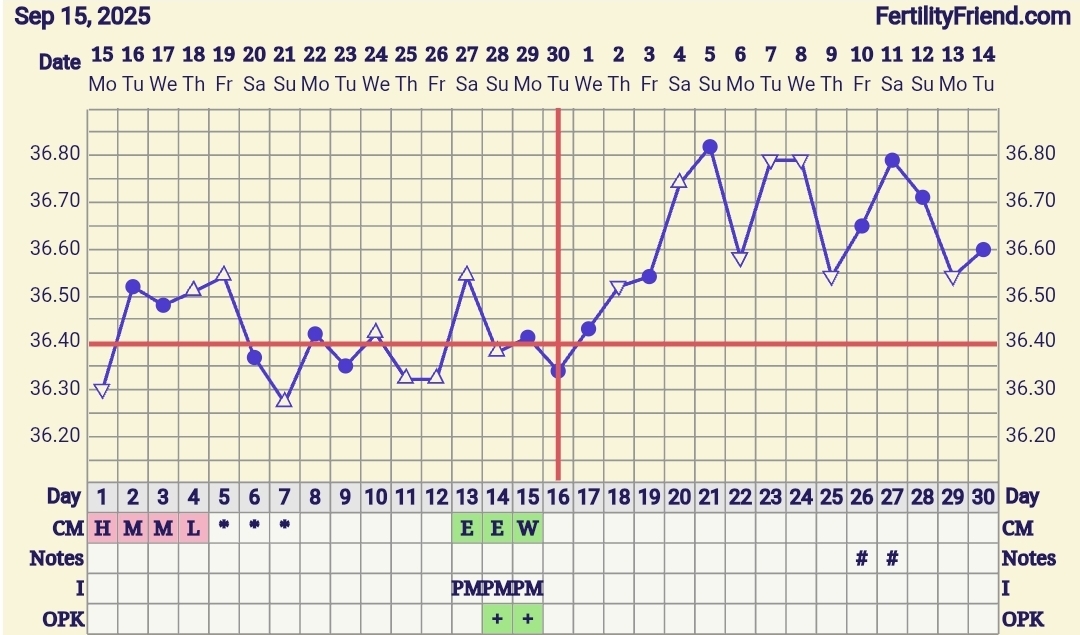 On: Tänään odotetusti viivat piirtyi ja aika hieno nousu omasta mielestä. En nyt oikein osaa sanoa, onko FF veikkaus oikein ovispäivään liittyen kun niin monta positiivista päivää oli. No, joka tapauksessa muutama päivä sinne tai tänne. Tietääpähän jos testailemaan jossain vaiheessa lähtee.