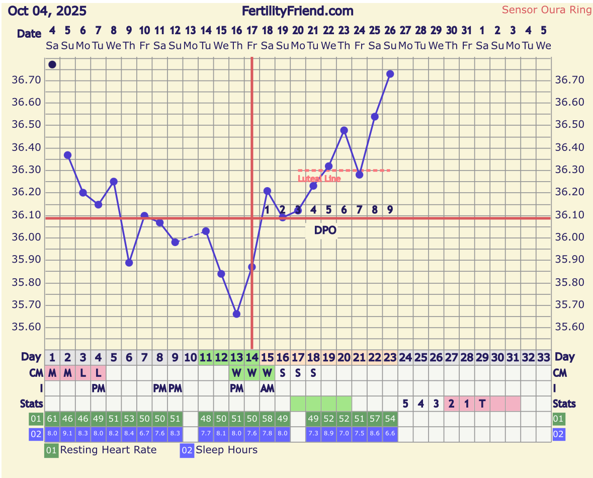 Täällä lämmöt tippui entisestään, no tosin 0,01 astetta, eli eilisestä 37,02 ---> tämän päiväiseen 37,01. Dpo8 "jo"... En tiedä ehkä vaan normaalia lämmön sahailua kun noin pieniä muutoksia? Mutta voiko vielä päätellä mitään suuntaan tai toiseen? 😅 Ei varmaan niin aika tyhmä kysymys varmaan.