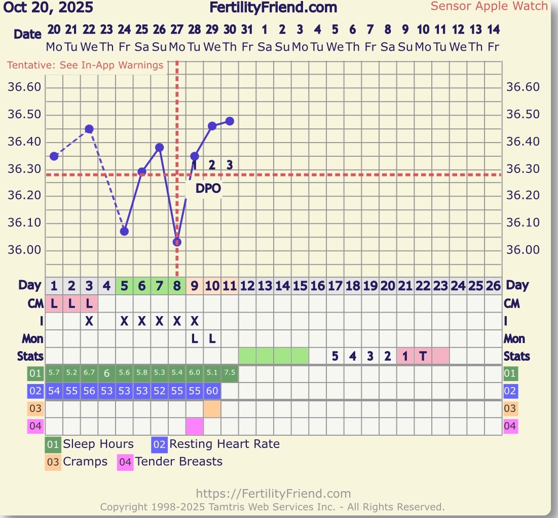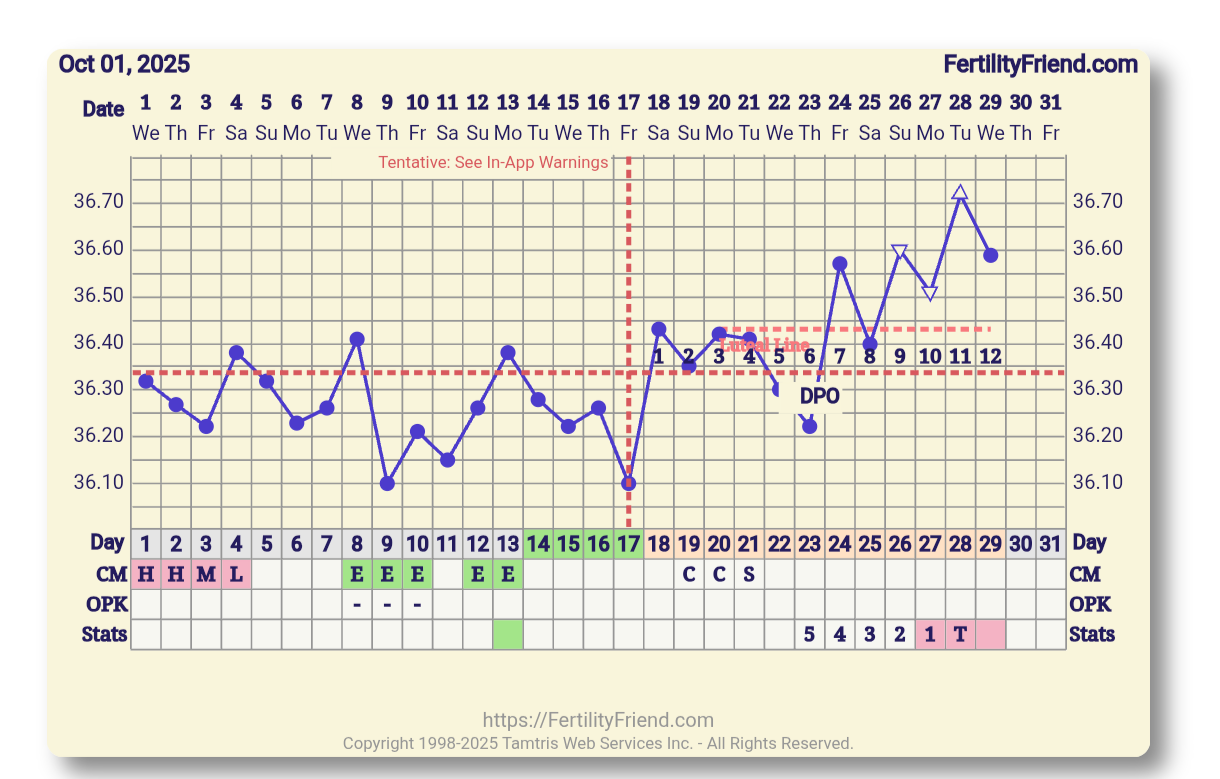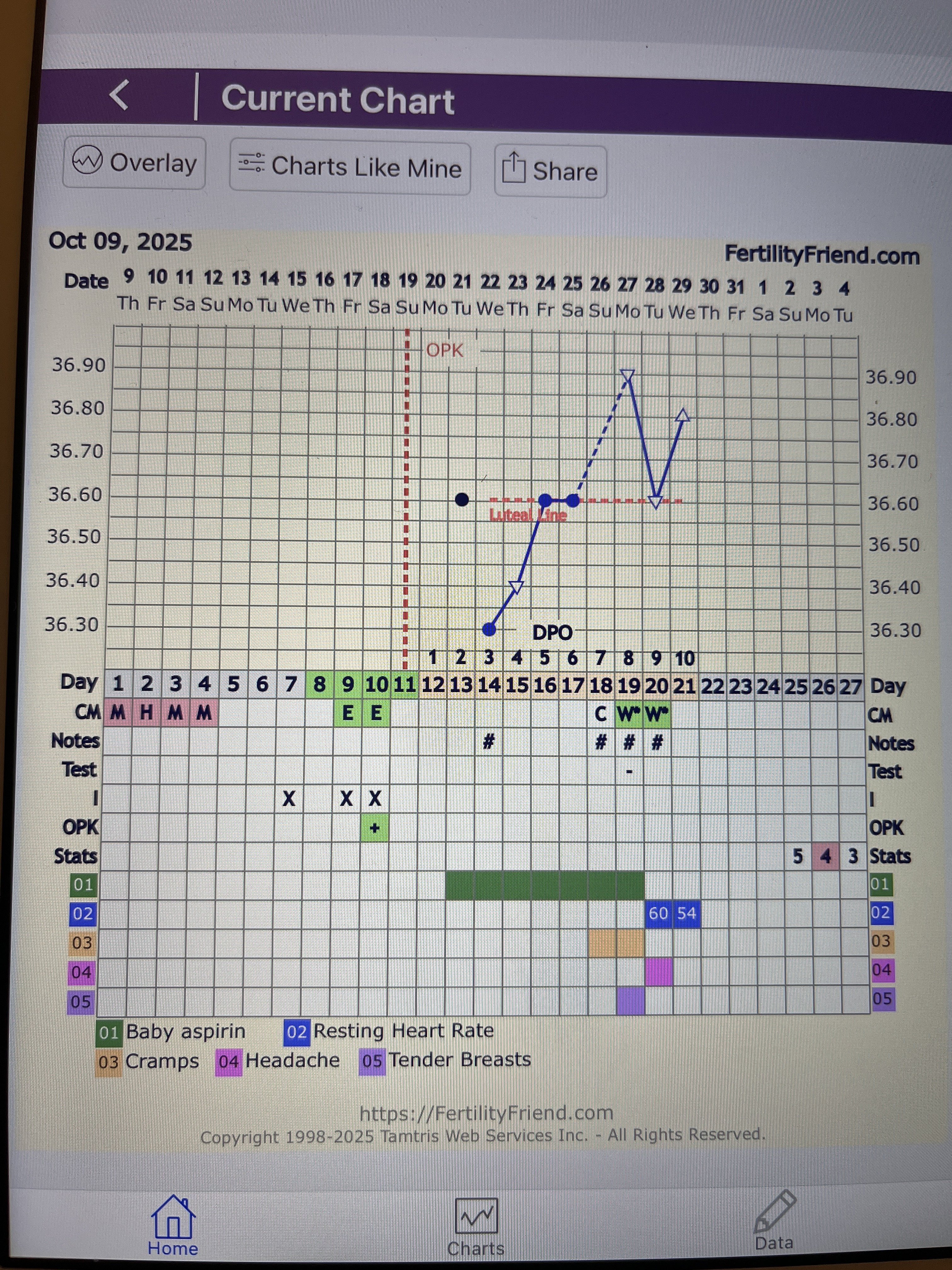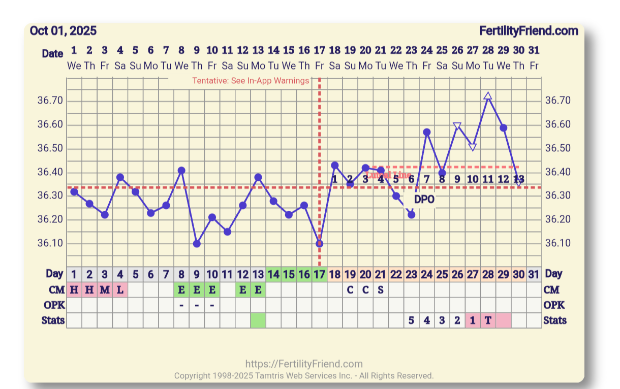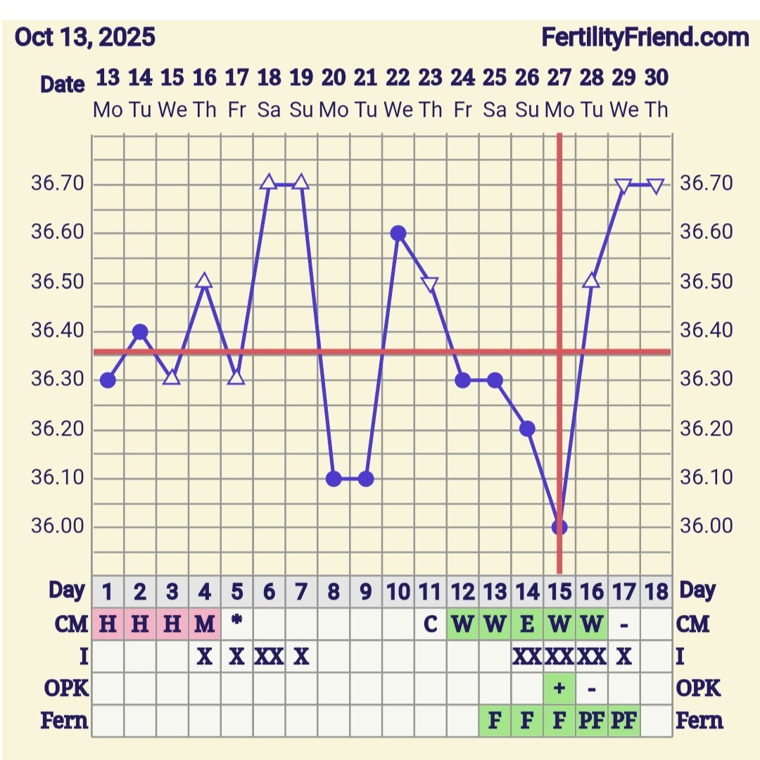 Omaanapaa. No mittausolosuhteet on muuttuneet ja kellot siirtyneet, niin en taida varmaksi saads tietää irtosiko munasolu.
