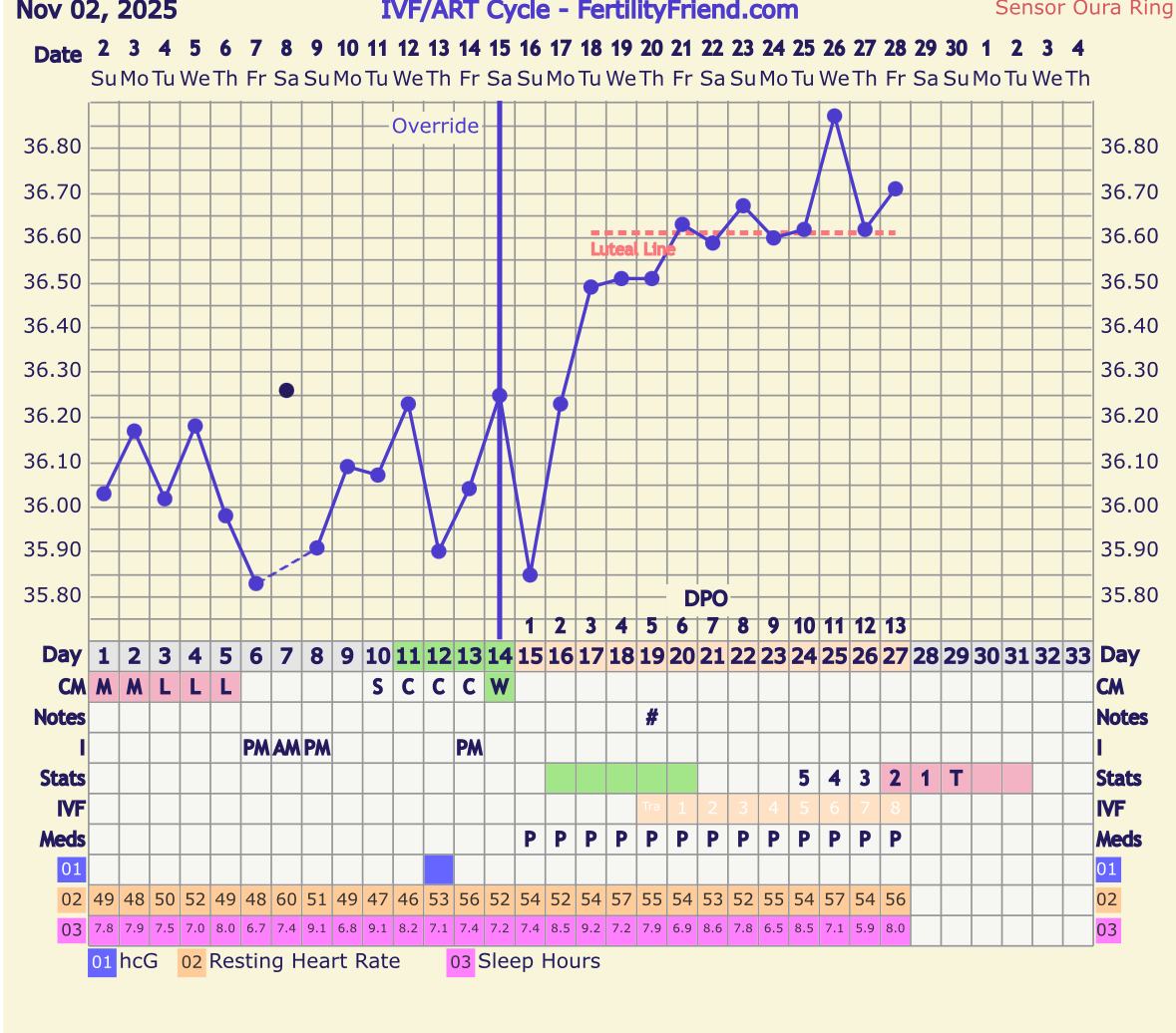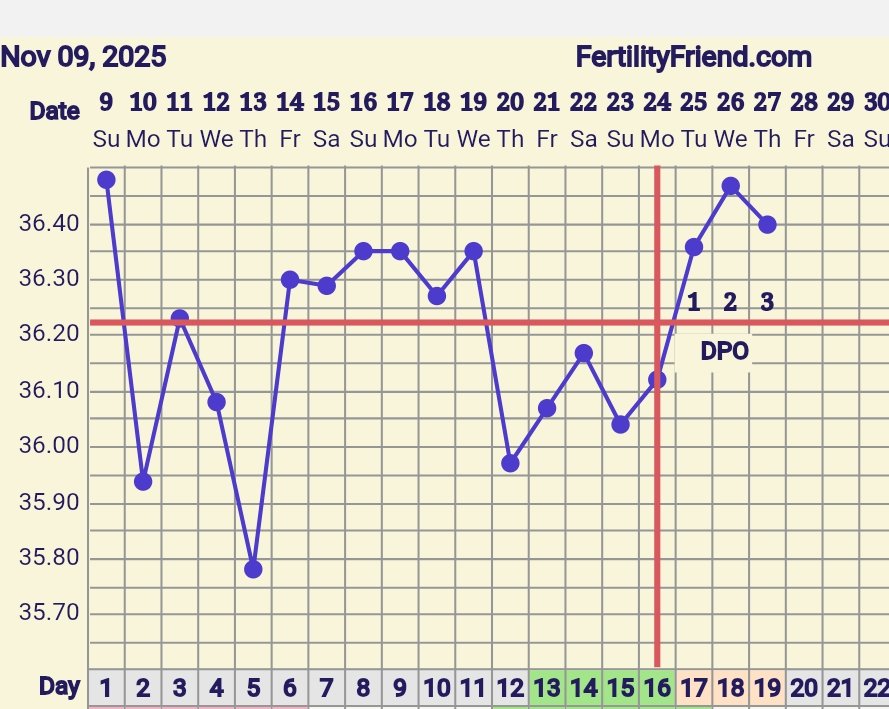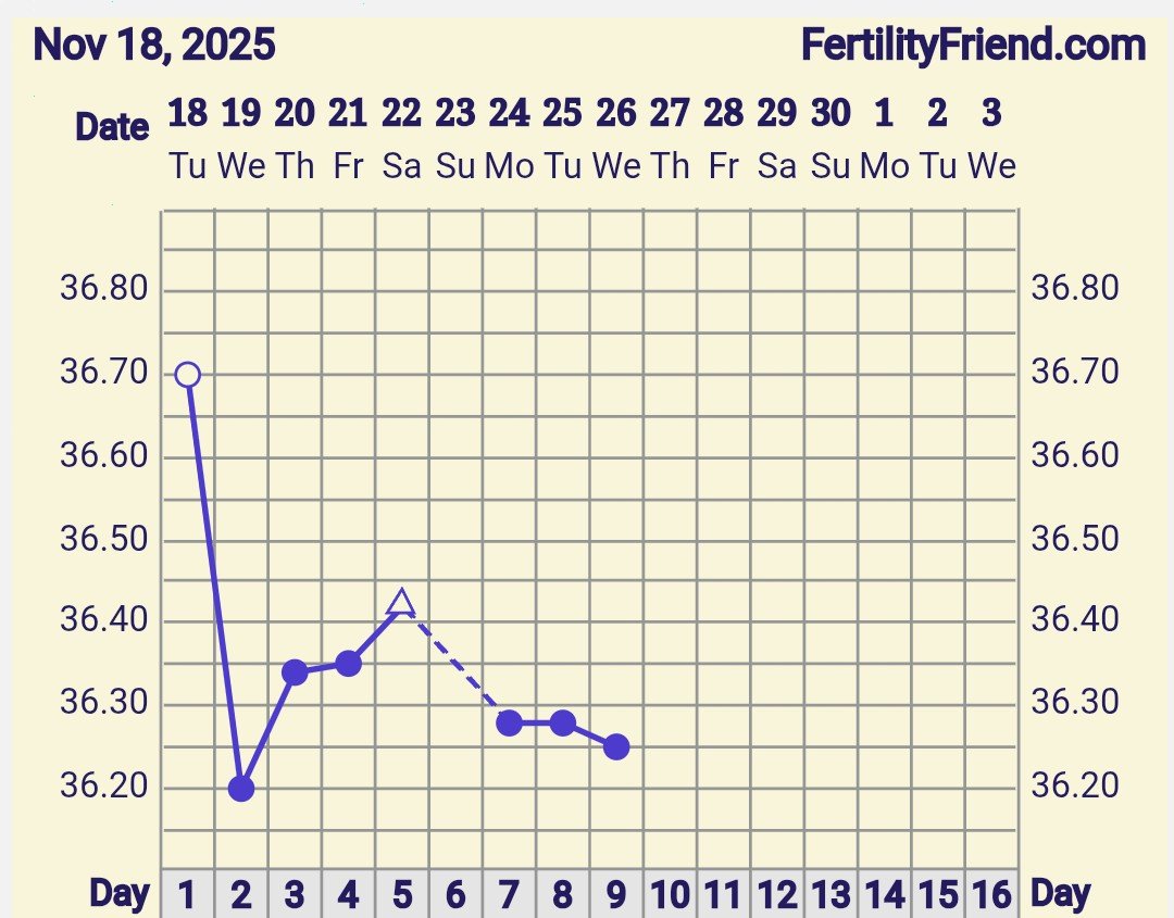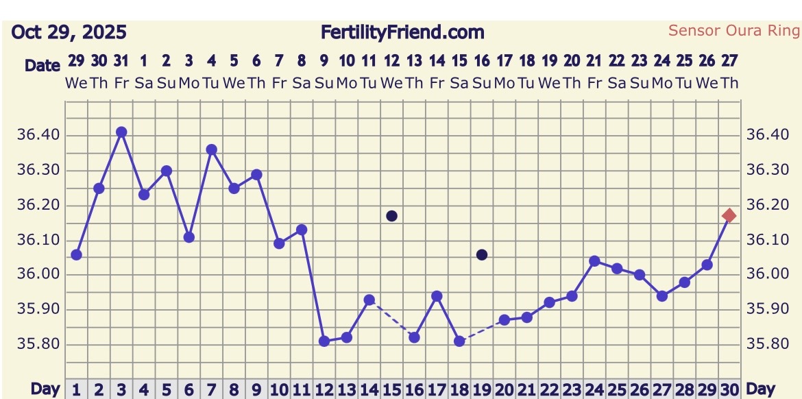 Höh mulla jäi eilisen lämpöpomppu yksittäiseksi ja tänään palasi hinuttamaan tuohon luteaalilinjalle 😅 Edelleen olo tosi hyvä, ajattelin lähteä taas tänään jumpalle ettei pää ihan hajoa. Jostain syystä heräsin tänään ennen kuutta ilman kelloa, mut kuitenkin unta tuli melkein 6h, niin ei pitäisi olla vaikutusta lämpöihin. On kyllä vähän sellainen olo, että ihme jos tästä plussa tulee. Luulisi, että tässä vaiheessa pitäisi olla edes jotain oireita tai tuntemuksia 😅
