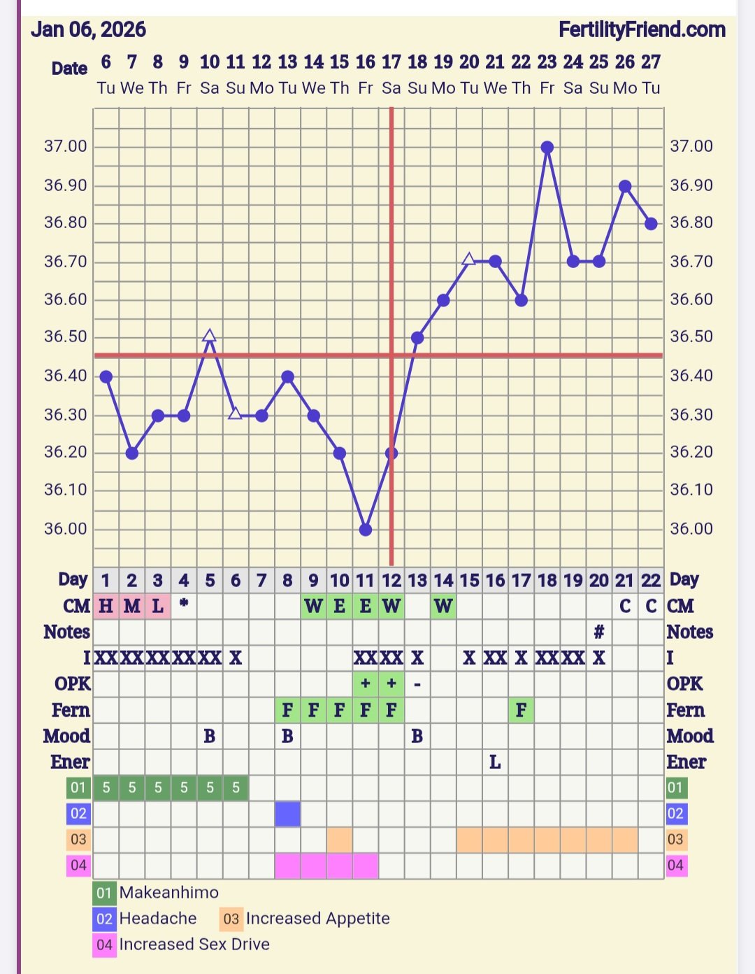 Mulla oli oireiden mukaan tässä kierrossa ovis kp 14, kun yleensä on kp 17 ja nyt vasta tajusin, että se taitaa johtua siitä, kun aloitin Donafertyn tässä kierrossa. Mietin kanssa, että mahtaakohan olla hyvä vai huono juttu? Aikaisemmat raskaudet on alkaneet kyllä näistä vähän myöhemmistäkin oviksista mutta en tiedä oisko toi Donaferty tehnyt kuitenkin hyvää soluille... Täytyy toivoa parasta..