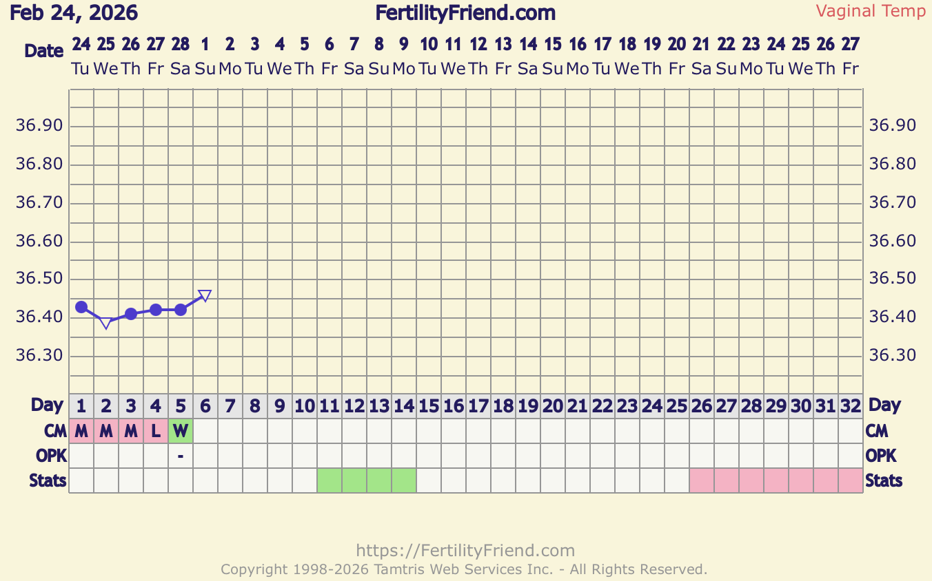 Itse tein sen pregcheckin testin ei näkynyt mitään. Joten lugesteronien lopetus taisi olla oikea päätös. ☹️ Katsotaan milloin vuoto alkaa ei ainakaan vielä. Lämmöt korkealla vielä yllättävän vähän vaan tippuivat eilisestä. Noin 0,11 astetta..