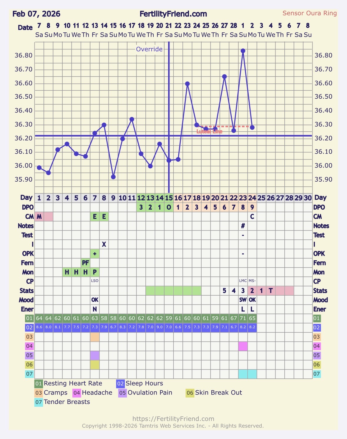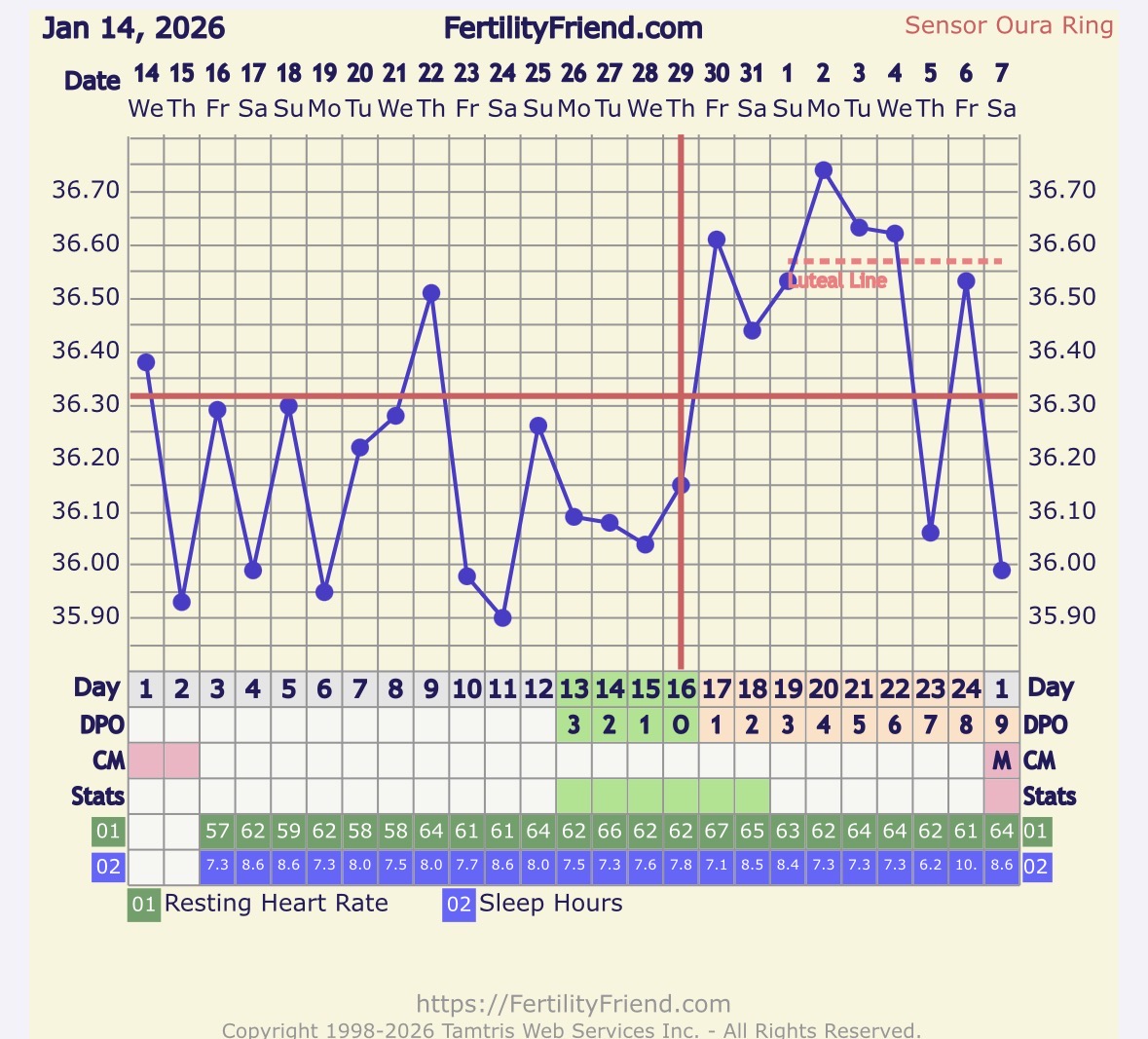 Sori nyt spämmistä, mutta latasin tuon ff:n ja importasin tiedot Ourasta. Tässä käyrä. Ff ajoittaa ovulaation sunnuntaille, enkä osaa muuttaa sitä. Ovulaatio oli kuitenkin lauantaina ainakin kehon merkkien ja ovistestien mukaan. 🧐